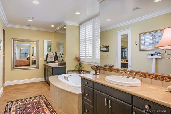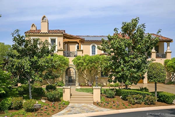 Stylish and Sophistication abound in this tastefully appointed Crosby home! Located on a corner lushly landscaped lot with private pool/spa and water features. This majestic property will not disappoint! Amenities to satisfy ALL: 5207 sq. ft., 5 Bedrooms en-suite, 5.5 Baths, Bonus/Media room, Library. Two Master Suites, one on main level, second level Master has balcony and views. 3-car garage. Beautiful hardwood floors, crown moldings thru-out, gorgeous gourmet kitchen with Wolf/Sub-Zero appliances, attached guest Casita with separate entry. Enjoy entertaining under your covered Loggia with fireplace and fan. Emergency backup generator system. The Crosby offers: Golf, swimming, tennis, work-out in the state of the art gym, dining and social events. Take leisurely walks to enjoy the lakes, streams and mountain views. The Crosby of Rancho Santa Fe is an outstanding Fred Couples and Brian Curley par 70, private course. Classic in its appreciation of nature and golf! $1,895,000