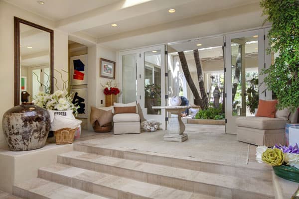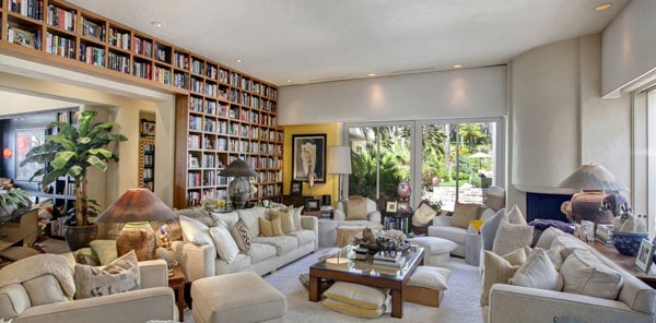 Seeing this fabulous home in person will reveal all – with its limestone floors, 5 lift and glide doors, even the materials used are artist materials and beautiful bookcases have added a sense of casual comfort to the formal living room, hallways and beyond. Come and let this environment shape you. This is one of the jewels of Rancho Santa Fe.