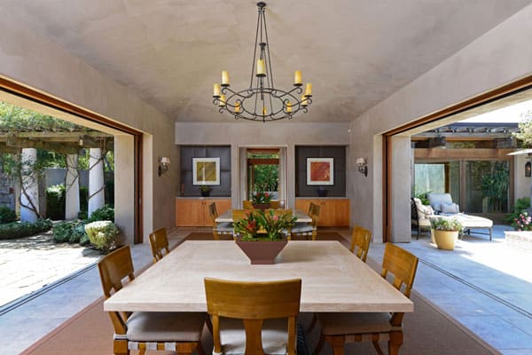 Designed by internationally recognized architect and artist Wallace Cunningham known for creating a timeless image using: place, form and light, opening structures to the sky, landscape and views. Located in the guard-gated community of Rancho Santa Fe Farms, set on an exceptional golf course frontage site uniquely positioned with unobstructed ocean and golf course views. Disappearing panels of glass, welcome the outdoors in, creating an open air-pavilion where the indoors and outdoors become one. Interior spaces spill out onto private scenic courtyards and patios which are bathed in the natural light. The horizon shaped zero edge pool mirrors the view of the pacific ocean, reflecting the late afternoon glow of the setting sun. Designed for large scale entertaining or a private retreat for everyday enjoyment, the property has 6 bedrooms all en-suite, 2 powder rooms, sun filled kitchen with breakfast room, two offices, gym, game room/family room and formal living and dining rooms. Over sized 3 car garage. Stunning use of woods and stone- perfectly appointed throughout. All set in a very private and quiet setting with no neighbors in sight. Truly a work of Art.