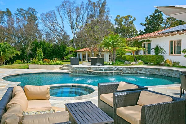 The rare property that offers all the requirements for today’s Buyer! With a million dollar investment of the finest talent and highest quality materials, this property has been redone in its entirety and done, oh, so well! Gracious amenities throughout the interior and exterior in addition to practical features including solar and weather-based irrigation complete the desirability of this property! Sited upon a premium extremely private homesite on a quiet cul-de-sac in incomparable Fairbanks Ranch, this home enjoys single level living. The Main House presents 4 spacious bedrooms, 6 baths, handsome Library/ Executive Office, formal living and dining rooms, a master chef’s kitchen, wet bar and wine room, 4 fireplaces, and so much more. The very large detached 2 bedroom Guest House is positioned for privacy and easy access. Offered at $3,395,000