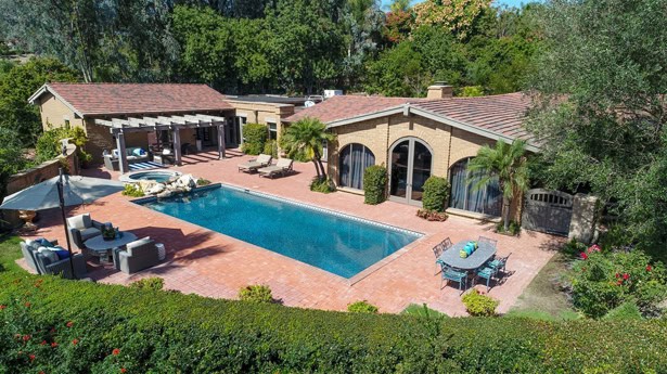 Perched on 2+ westside Covenant acres, this Early Californian authentic adobe infuses old-world charm with modern design elements. The single level has a cook’s kitchen with top-of-the-line appliances, 5 bedrooms plus an office, and comes complete with a guest casita, sun-kissed pool, and 4-car garage. Set at the end of a long gated drive, this alluring home is conveniently located near the RSF village, school, golf course, and shops. $3,699,000