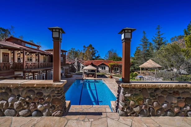 Experience serenity and quiet beauty as you enter the custom bridge and gates to this 14.9 acre estate. The main house was the design genius of La Jolla architect Mark Christopher and renowned designer Brindan Byrne. With unmatched attention to detail, the home boasts 4 bedrooms, 4 baths, office, teen room, and over 5000 SF. The charming 1 bedroom, 1 bath casita enjoys a separate entrance, kitchen and private patio. As one of San Diego’s most authentic Craftsman residences, the interior is accented with rich woodwork on doors, windows, railings and built-ins. Handcrafted tiles and murals are but a hint of the artistry found throughout. The exterior amenities are endless including a relaxing front porch, oversized pool with diving platform, numerous patios for al fresco dining, and a 3400 SF barn.