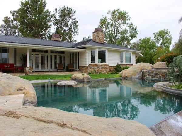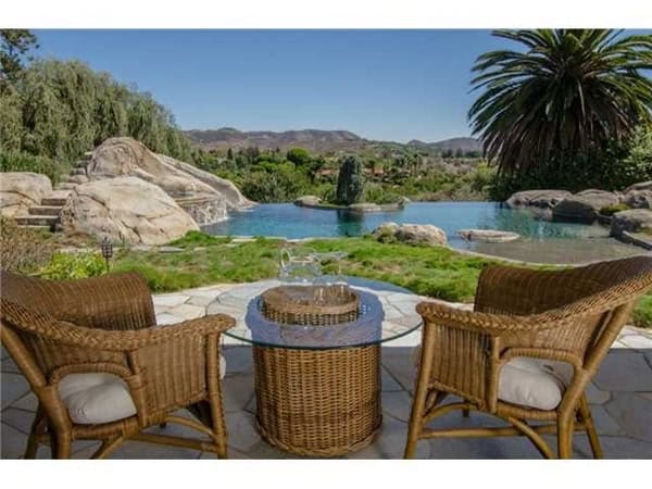 The perfect entertaining home, single-level, great room design that opens out to a large stone covered patio, overlooking a beautiful infinity edge pool & jacuzzi, surrounded by granite boulders, all of which overlooks the beautifully landscaped grounds, and then to vistas of the surrounding countryside. The main home includes 3-4 bedrooms, 3.5 baths, study, wood paneled office, formal dining, game room, etc. For the Equestrian, a “Beautiful” 4-stall Barn w/Loddon stall enclosures, a quality Riding Arena, plus a separate Guest House with its own private driveway. $3,525,000