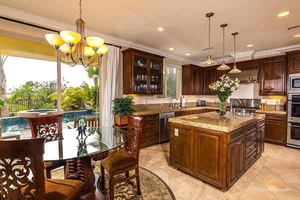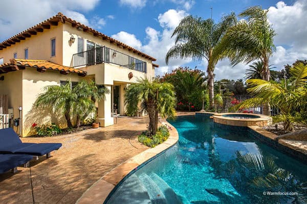 This Mediterranean custom home has the rare ability to entertain, as well as make you feel relaxed in a private, retreat like coastal oasis. The backyard is stylistically enhanced with custom bar/grill area, swaying palms, pool with waterfall and a spa positioned to look out onto the coastal views. The kitchen conveniently flows onto the patio, the living room, and formal dining area. An option room with full bath is also on the first level. Seller will entertain offers between $1,389,000 and $1,479,000
