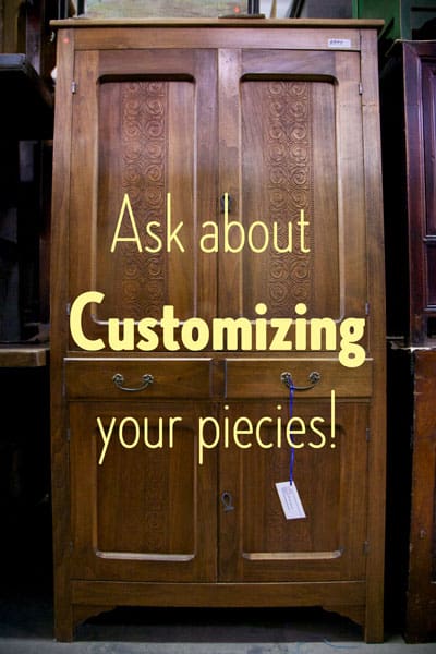 Customizing your home furnishings is like tailoring your clothes, the smallest change takes a piece from ho-hum to PERFECT FOR YOU! This is just one of the things we love about the guys at San Diego Rustic furniture. The warehouse is packed to the gills with amazing, unique, rustic furnishings carefully currated from all over the world but on top of that, Warren and his team with customize anything to make it just perfect for you and your home.
