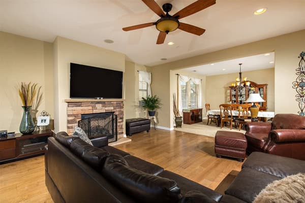 This nearly new home is absolutely stunning! Step inside this wide open floorplan to rich hardwood flooring, custom paint, elegant wrought iron staircase, cozy stacked stone fireplace & much more! The LARGE kitchen features upgraded granite, huge island, breakfast bar, oversized dining area & stainless steel appliances! 4 bedrooms & loft up and one full bdrm suite down! Bkyrd bar/ built in BBQ, bubbling spa & lounging area! SOLAR! 5 beds  4/1 baths  2 cars  3296 sqft