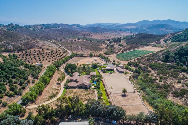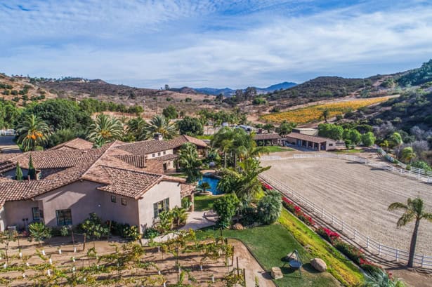Savor the good life in this lush 15.4 acre estate. Warm and elegant single level home with high ceilings, chef’s kitchen, great room, fabulous pool, spa and waterfall. Detached guest areas are suitable for guests or living. Top quality horse facilities with barns, caretaker quarters, large riding arena & pastures . Complete with acres of cabernet, merlot and montepulciano vines, this very private, gated estate enjoys coastal breezes, plentiful irrigation water and is conveniently located with easy access.