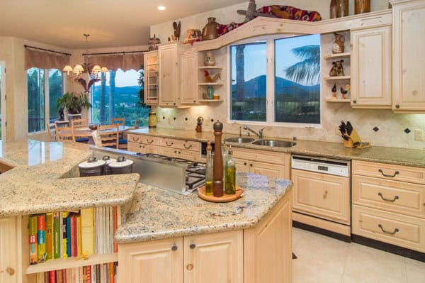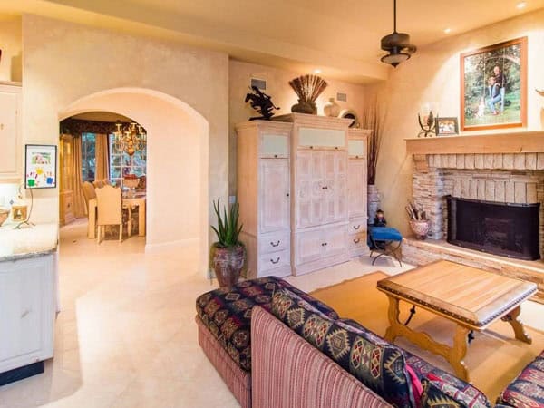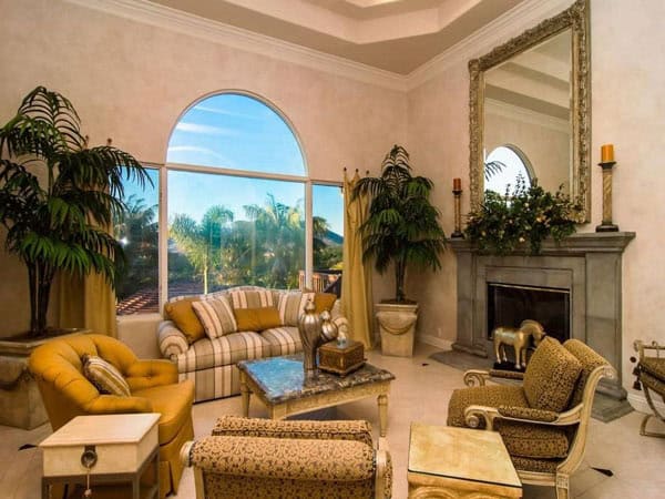 This enchanting custom estate captures the timeless beauty, romantic style and the sweeping views of the back country. This European villa transplant is surrounded by a mature and fragrant orange grove. The winding drive takes you to a beautiful circular motor court leading to a front entrance flanked with natural water features. As you step into the front entry you will be immediately mesmerized by the sweeping views of the hillside beyond. The main level features the lovely living room, dining room, master suite. Offered at $2,295,000
