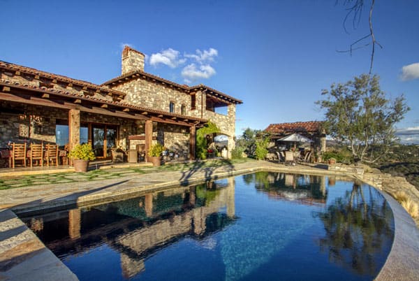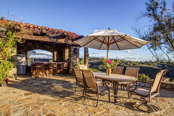Welcome to “Villa di Benedizione”….”House of Many Blessings”! This gorgeous one of a kind Tuscan style property is situated on 3.25 acres in the exclusive gated community of Wildflower Estates in Olivenhain. Single level and turnkey, this luxurious home is perfect for entertaining while preserving the comforts of home. The panoramic views stretch all the way to the ocean, and are absolutely stunning. A beautiful courtyard complete with a soothing fountain leads you to the custom made front door and into the heart of the home. The open great room boasts sprawling ceilings with beams, chiseled travertine, custom chandeliers, and a gorgeous fi replace. The gourmet kitchen is a chef’s dream with custom cabinetry of Alder distressed antique glaze finish, self-closing drawers, a Viking Range, Subzero refrigerator and freezers with glass facing, a Shaw’s original farmhouse sink, a walk-in pantry, heated floors, vintage beam/rock mantle over the cook area, and hand painted tiles form a beautiful backsplash. The gorgeous master suite has stunning views, a sitting area, heated limestone floors in the master bath, a steam shower, spa tub with therapeutic lights, and copper sinks and mirrors. Make your way to the other side of the house to find the family/media room along with 2 other bedrooms and the laundry/craft room. The family/media room offers custom cabinetry and surround sound. The 2 bedrooms have bathrooms en suite with doors leading out to the relaxing grounds. The only room upstairs in the main house is the exquisite pizza room. Finished with over grout Tuscan style custom stone veneers, and a custom pizza oven, this room boasts unbelievable panoramic views. The exterior of the house is 75% rock, with Pella clad/wood windows, and a detached 4-car garage. Detached guest suite including full bath, over the garage. The exceptionally private backyard features a disappearing edge pool and spa, outside pool shower and bath, a built-in covered barbeque area, and a children’s paradise complete with an adorable play house with Dutch door, lights and bunk beds and exterior swing. Garden area, dog run and livestock pen should you choose to have chickens or goats, etc. This house has it all; location, views, and every upgrade you could think of! One of a kind home on a one of a kind lot. Olivenhain’s Finest! Offered at $3,599,000