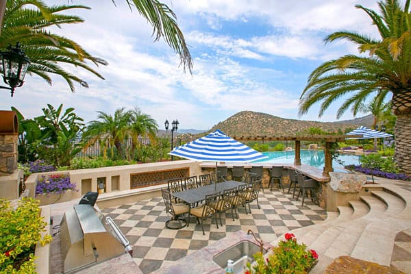 Created with the ambience of a Mediterranean villa with an array of materials and unique finishes, spectacular offerings include coffered, tray, & wood beam ceilings, masonry fireplaces, stunning light fixtures, and sublime entertaining spaces. Indoor/Outdoor living is made perfect with glass doors that disappear into walls and seamlessly blend the fabulous grand patio & loggia with the lush resort style backyard. A recent 3500’ renovation features a NEW outdoor kitchen with pizza oven and dining for ten, a redesigned infinity pool and spa, conversation pit, a guesthouse, and an Arcade-style game room with 2-lane bowling alley, kitchenette, and abundant space for movie nights and parties! Additional amenities in this gorgeous 5BR estate include an en-suite wood paneled office, a wine closet with stone ceiling, walls and flooring, home theater with tiered seating, an exercise room, 5-fireplaces, and garage parking for 6-vehicles. $3,900,000