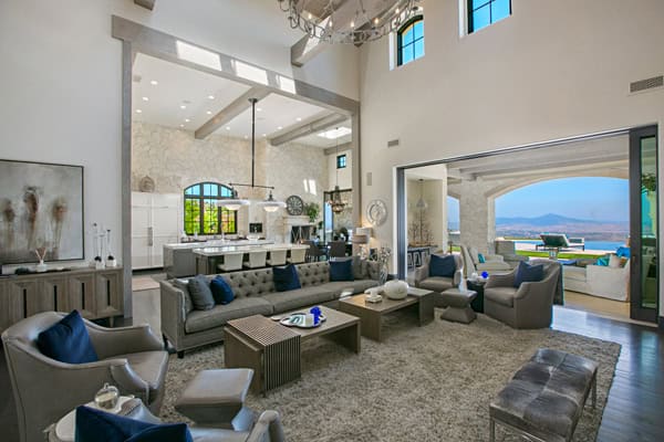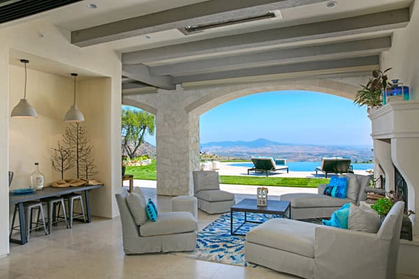 Tucked into the hills of guard gated Rancho Santa Fe sits an architectural masterpiece created in the style of a modern European Villa. This exceptional home located in the highly desired Rancho Santa Fe School District, enjoys breathtaking views and sweeping vistas over San Diego to Mexico and the Ocean. Exquisite materials include French limestone, white bronze hardware, solid hardwood floors, and distressed wood beams throughout. Spectacular interior spaces feature formal dining, office, a theater with motorized seats, curved screen, and optimized 7.2 sound system, a controlled subterranean wine cellar, and an adjoining wine room with dining for ten, mini kitchen and bar. Lush property grounds offer a loggia with 2-heaters and fireplace, infinity pool with gutter edge, slide, Jacuzzi, grotto, a pavilion, and an outdoor kitchen. $5,995,000