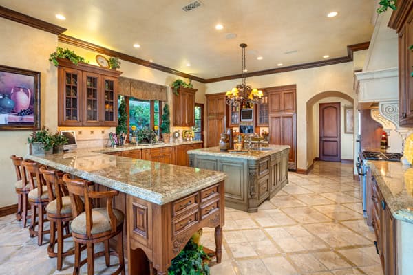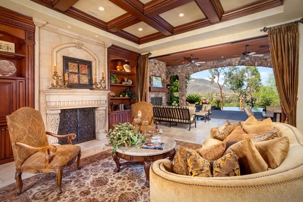 Located in The Bridges, one of Rancho Santa Fe’s most beautiful and elegant gated golf communities, and with stunning views of 3 fairways, this custom 5-bedroom Palazzo is reminiscent of the celebrated villas in Europe. Exquisite Walker-Zanger tile and mosaics in the bathrooms, kitchen and entry foyer, and William Ohs cabinetry, known for its extremely high quality, in the well-appointed kitchen and large, luxurious master bathroom, are just a few of the designer features of this magnificent home. Five fountains, strategically placed throughout the property, create a beautiful, restful atmosphere, while an integrated sound system, a dedicated game room with a stunning viewing balcony, a handsome built-in executive office and a 12-seat theater make living in this home a treasured experience. The self-contained VIP guest apartment can be easily accessed via a private staircase from the entry courtyard or via an elevator inside the home. $7,450,000