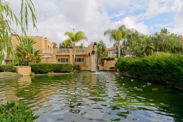 Looking for an affordable condo in Solana Beach? Look no further! This 2 BR, 2 BA unit backs up to one of the serene water features, with a large patio shared by the master bedroom and great room. Upgrades include Plantation shutters, tile and carpet flooring, new paint, and oversized bedrooms with plenty of storage space.  A wood-burning fireplace is located in the great room for those cozy San Diego “winter” months. Close proximity to the community pool and spas, racquet ball courts, club house, and laundry. Minutes from I-5, the beach and downtown Solana Beach, and just across the street from a shopping center filled with great shops, restaurants, and grocery store.