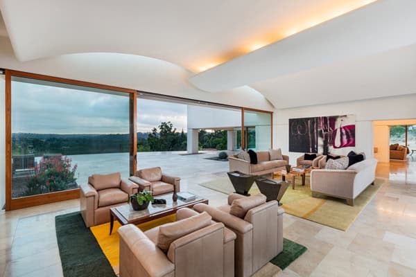 Privately situated one of the most premier view sites in all of Rancho Santa Fe, no expense was spared in creating this Wallace Cunningham custom designed 5BR Estate. As a crucial element in his designs, light was brilliantly incorporated to define, fragment and animate space. The Great Room is stunning with walls of glass opening on both sides: overlooking the stunning view beyond the zero edge pool on one side and the entertaining courtyard on the opposite side. Another key design element was to develop a step free single level Estate that would employ dramatic lath and plaster walls with ample space to display fine art, expansive windows, and an easy flow of space inside and out. The Dining Room is oversized and accommodates relaxed or formal settings and the chefs kitchen is ideal for any culinary experience. Prominent Master suite with his and her baths, exercise room and her office all enjoy stunning valley views. All other generous bedroom suites are privately set offering specialized environmental details and uplifting natural light. All situated on 5+ gated acres. Welcome to the Promontory.