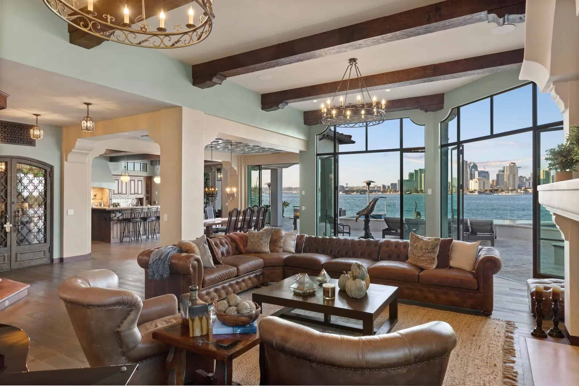 The finest in waterfront living with extraordinary front-row views of the city skyline and San Diego Bay. This exceptional, Mediterranean-style home features an open concept design and stunning interior and exterior spaces. Floor-to-ceiling glass doors and windows provide a framework for the staggering, unobstructed water and city views that must be seen to be believed. Exquisite design elements and endless amenities offer everything you need on one property.