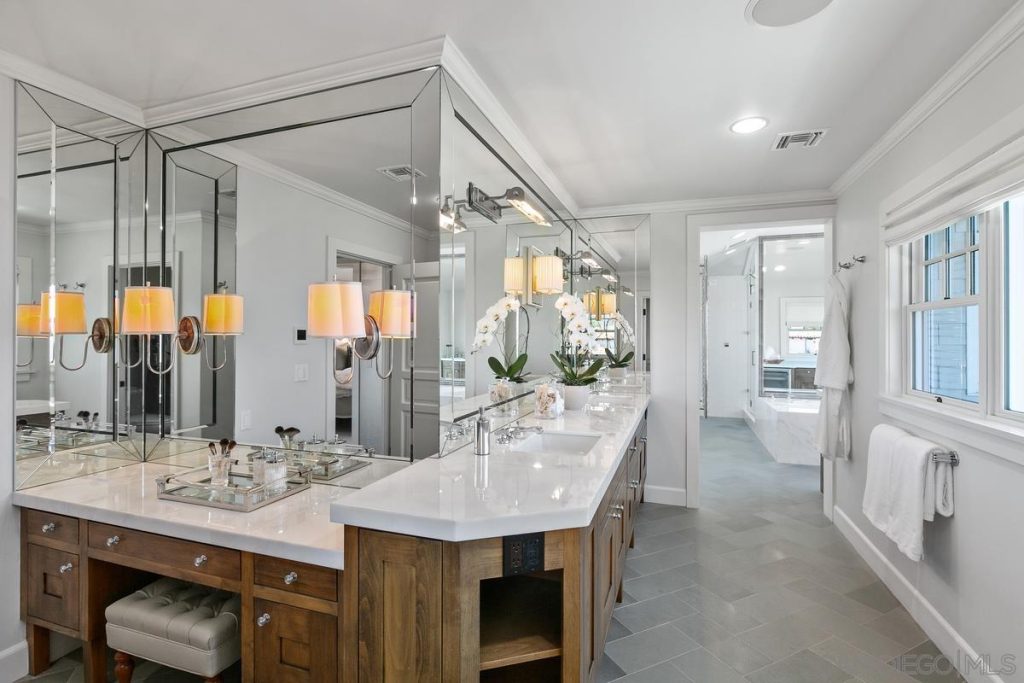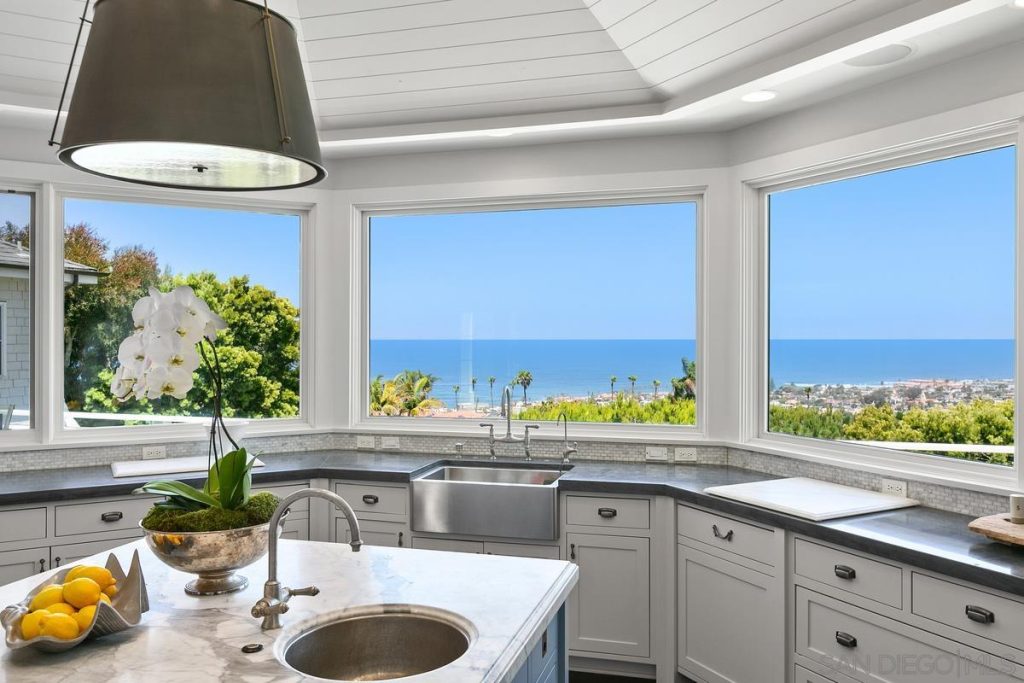 A setting of unparalleled privacy and beauty can be yours from this extraordinary Muirlands estate, where absolutely awe-inspiring views of the ocean, city and sunsets provide a priceless backdrop. Fully gated on a flat, half-acre parcel sheltered by majestic hedges, you’ll be mesmerized upon arrival by the home’s Hamptons-style architecture, timeless elegance and grand yet comfortable ambiance. The expertly designed interior includes 7 en suite bedrooms, 11 baths, a theatre, gym, wood-paneled office, wine cellar, a myriad of gathering spaces, garage parking for up to 5 vehicles plus off-street spaces in the gated drive, and an elevator servicing all 3 levels. Breathtaking living areas showcase disappearing doors which open onto an expansive ocean-facing deck and covered patio perfect for al fresco dining while embracing the coastal scenery. The well-equipped, chef’s kitchen boasts head-on blue water views, a center island, abundant cabinetry and multiple pantries. The upper level reveals the luxe master retreat, complete with a fireplace, 2 boutique-quality walk-in closets, spa-inspired bath, and sea view sun deck. 3 additional bedroom suites plus a sitting room are also located on this floor. The entertaining possibilities continue downstairs with a 12-seat theatre, climate-controlled wine cellar with tasting room, pool and game/bar rooms. Bordered by privacy-providing greenery, the secluded backyard presents pristine lawns and gardens, a built-in grilling station, and sprawling stone patio surrounding the sparkling pool and spa. An exceptional La Jolla lifestyle awaits! A setting of unparalleled privacy and beauty can be yours from this extraordinary Muirlands estate, where absolutely awe-inspiring views of the ocean, city and sunsets provide a priceless backdrop. Fully gated on a flat, half-acre corner parcel sheltered by majestic hedges, you’ll be mesmerized upon arrival by the home’s Hamptons-style architecture, timeless elegance and grand yet comfortable ambiance. Expertly designed to accommodate both sophisticated soirees and personal enjoyment alike, the interior is comprised of 7 en suite bedrooms, 11 baths, a theatre, gym, wood-paneled office, wine cellar, a myriad of gathering spaces, and an elevator servicing all 3 levels. Indulge in a flawless indoor-outdoor environment from the voluminous living areas with disappearing doors opening onto an expansive ocean-facing deck and covered outdoor living room perfect for al fresco dining while embracing the coastal scenery. Cooking is a delight in the well-equipped, chef’s kitchen boasting head-on blue water views, a center island, abundant cabinetry, and multiple pantries. An ascent to the upper level reveals the luxurious master retreat, complete with a fireplace, two boutique-quality walk-in closets, a spa-inspired bath, and a sea view sun deck. 3 additional bedroom suites plus a sitting room are also located on this floor. The entertaining possibilities continue downstairs with a spacious 12-seat theatre, climate-controlled wine cellar with tasting room, as well as pool and game rooms with a wet bar. Affording a feeling of seclusion seldom found, the breathtaking backyard presents pristine grounds bordered by privacy-providing greenery, manicured lawns and gardens, a built-in grilling station, and a sprawling stone patio surrounding the sparkling pool and spa. Some additional highlights include garage parking for up to 5 vehicles plus off-street spaces in the gated drive, a security system with cameras, zoned heating and cooling, an attached guest quarters on the main level, stunning millwork and quality craftsmanship throughout. Ideally situated in The Muirlands, overlooking the Village of La Jolla, with convenient access to all. An exceptional lifestyle of luxury and convenience awaits!