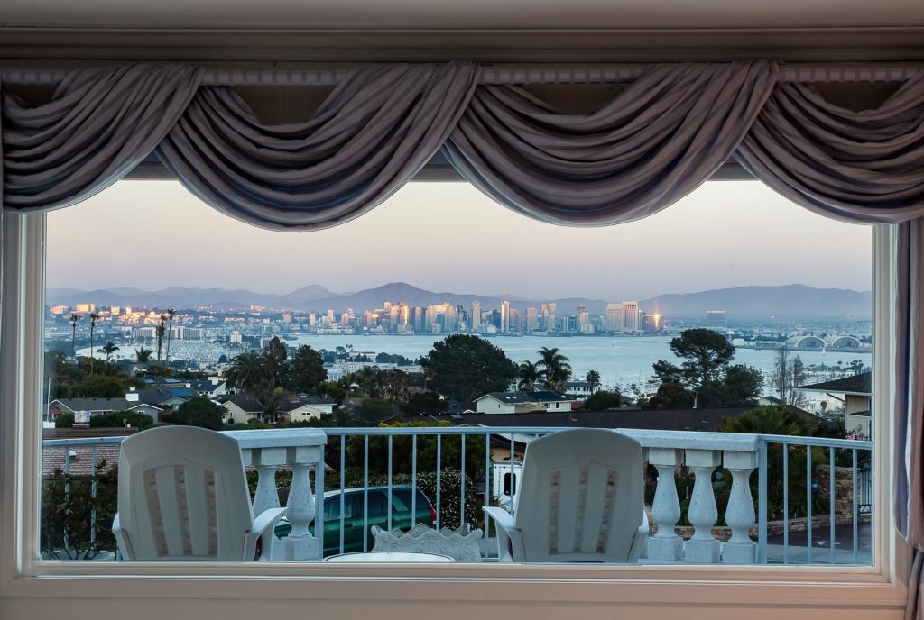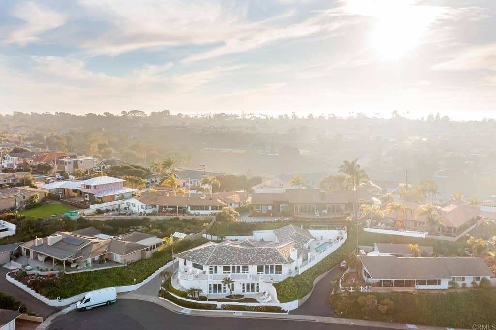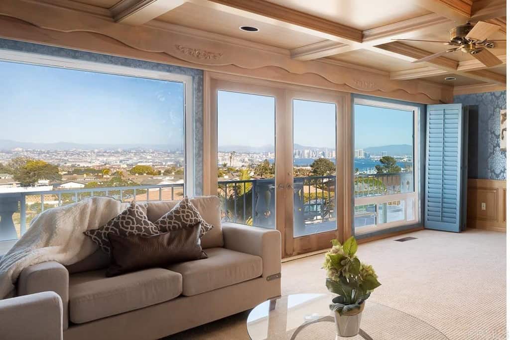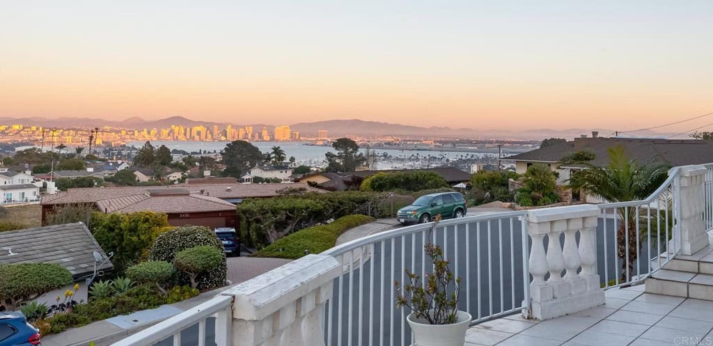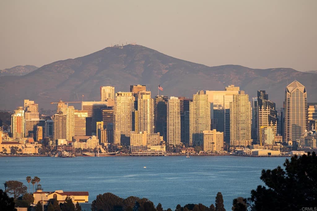 Views, views and more views of this spectacular gem on the market for the first time. 3 beds, + 1 optional bed, situated on a cul-de-sac on arguably one of the greatest lots in Fleetridge, this breathtaking estate, fit for a king or a queen, lives like a single-level home while offering sprawling sit-down views of the San Diego Bay, Marina, Coronado, Downtown Skyline, East County Mountains, and Mexico from literally every bedroom and living space- even the dining room and downstairs quarters! Large picture windows bring in the natural light and frame the views like living art! Prepare to be stunned from the moment you enter the driveway of your classic Point Loma Palace. Enjoy privacy, spacious open concept living, excellent flow, and so many spaces to entertain, both indoors and outdoors, creating that seamless and luxurious indoor/outdoor living. Kick back and relax from a long day at your sunny pool, large soaking tub, or grab a refreshment from the wet bar and take in the views from your wrap around patio as you watch the scenery turn from rainbow gradient sunsets to a sparkling treasure chest with twinkling night lights. Other notable features include a grand entrance, luxurious primary suite, with all bedrooms ensuite, spiral staircase, bonus optional room/office, split living quarters for multiple generations, two dining areas, chef’s kitchen, dedicated laundry room, and ample storage! Come see this rare jewel while you still can, and prepare to be blown away!