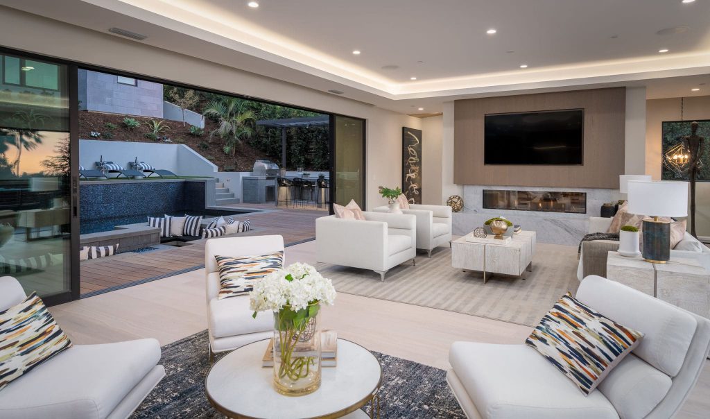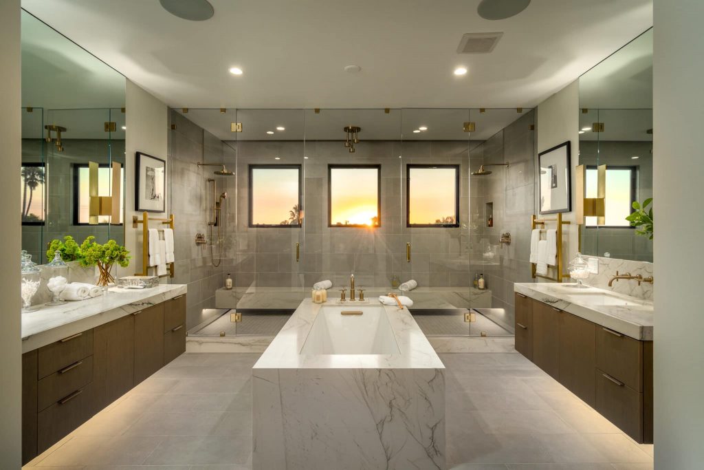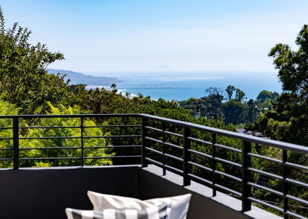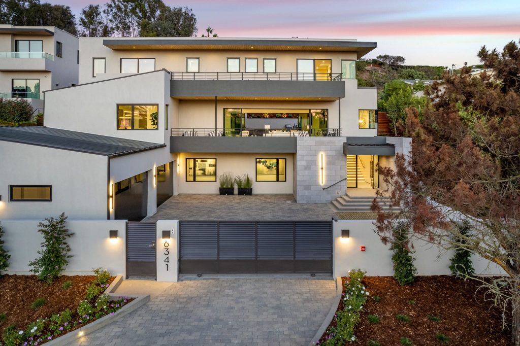 This modern sophisticated estate accentuates many aspects of mid-century design while incorporating new modern timeless elements and materials! Located on roughly a half-acre, Pelican Development delivers a “New Build” uncompromised elevated architectural masterpiece! Upon entering through the private gates, you are welcomed by a large motor court and an oversized dramatic custom stone entry. Main level living incorporates a great room with open concept living, modern kitchen elements, dining room, wine cellar, and 24’ walls of glass for a unique indoor/outdoor experience. Enjoy the many outdoor entertaining spaces and endless amenities including pool, spa, sunken fire pit, putting green, and outdoor kitchen, all while taking in the ocean views. The primary suite on the second level enjoys views of serene treetops, coastline, and ocean views, and includes an oversized closet, his/her spa bathroom, and private outdoor patio. A large and private two-story casita with a home office is located across from main house overlooking the pool and interior courtyard. Every inch of this property was designed and used to maximize its beauty and overall function!