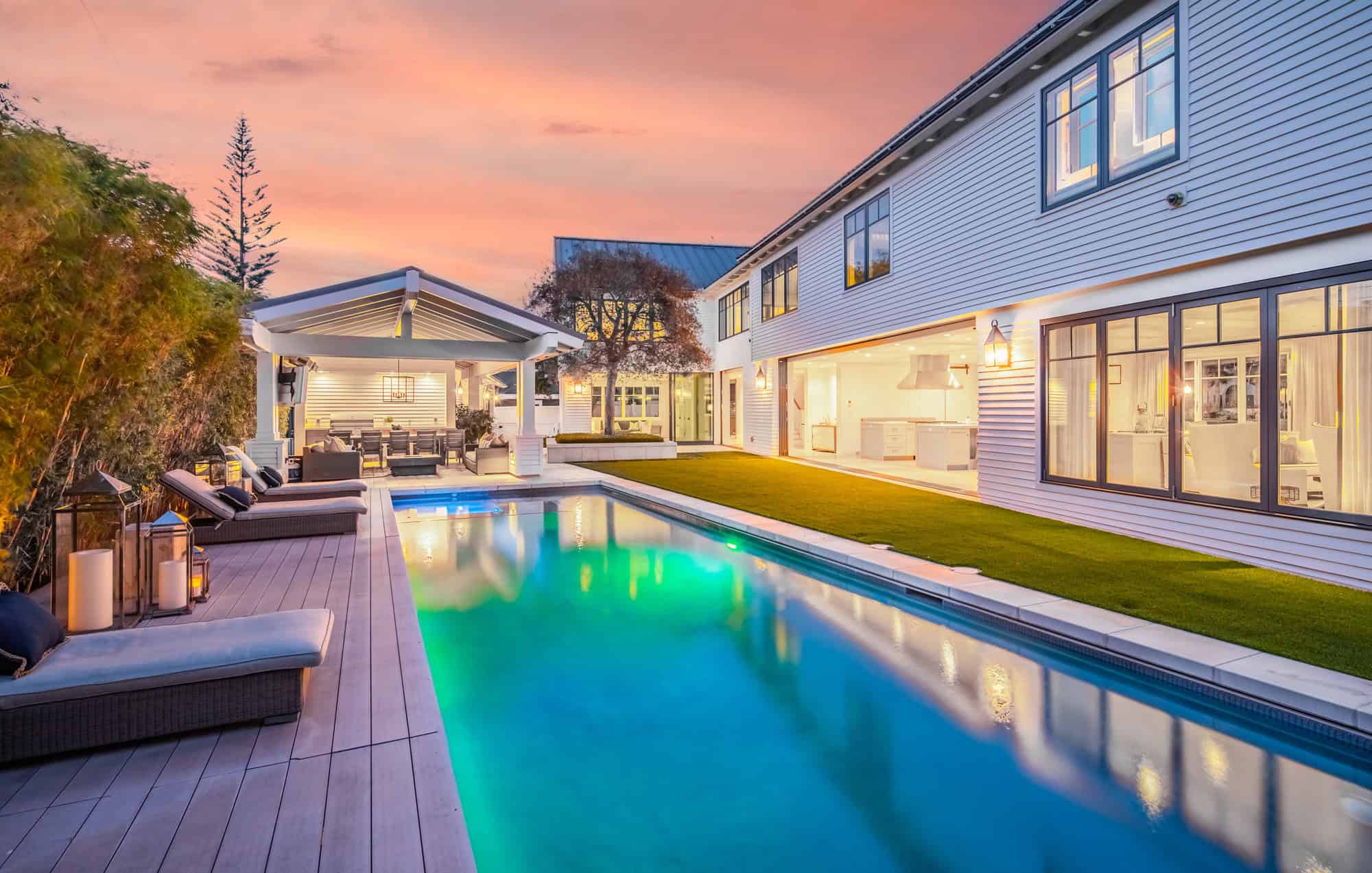Experience the ultimate Southern California lifestyle in this Coastal Contemporary Farmhouse blocks to Coronado’s Beach, Orange Avenue and Sunset Park. Designed by Christian Rice AIA, this custom built home is situated on a 13,000 sq ft lot and offers 7 bedrooms, 8 full bathrooms and 2 1/2 baths. The open concept engages the spacious courtyard with pool, spa and outdoor loggia with built-in kitchen. Other features include: a detached guest house, large basement with media room, tasting area, game room and 2 bedroom suites, 2 car garage, Crestron Smart Home system and more. Visit www.900alameda.com  for additional details.