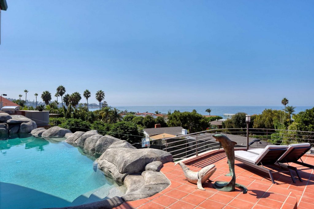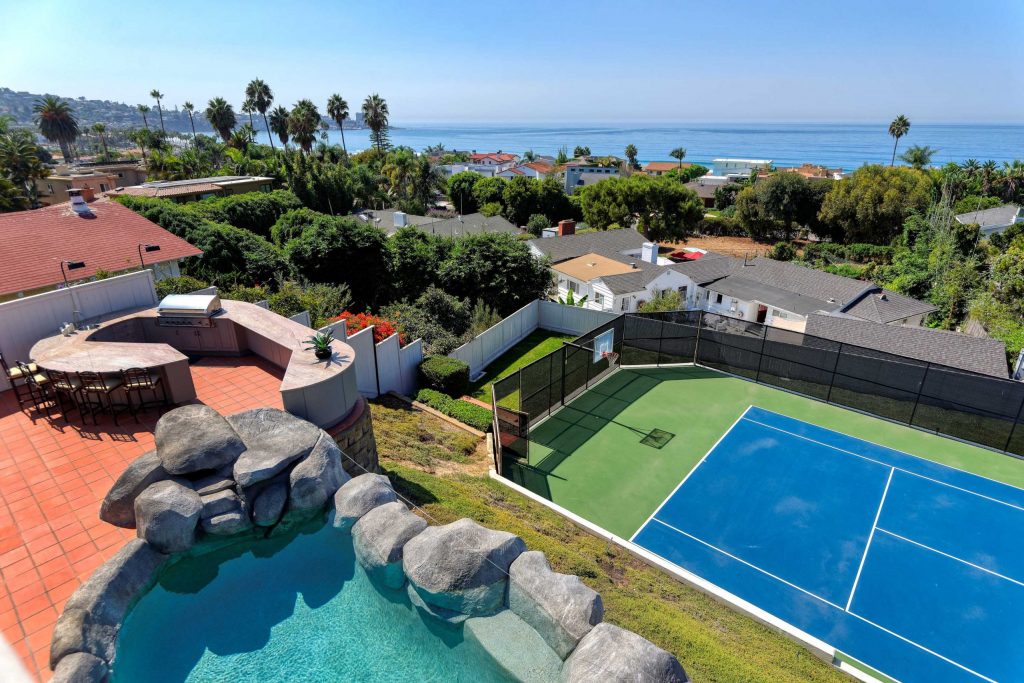 On vast grounds of appx 2/3 acre with tennis/basketball court and guest house by the beach, this architectural signature estate enjoys magnificent panoramic views to La Jolla Cove, whitewater surf and open sea. Curvilinear one-level living areas maximize this prime site close to the beach and brings the bright outdoors in via massive planes of glass and skylights. Fantastic for entertaining with natural rock-surround pool, expansive patio area with outdoor kitchen. A special property to make your own.