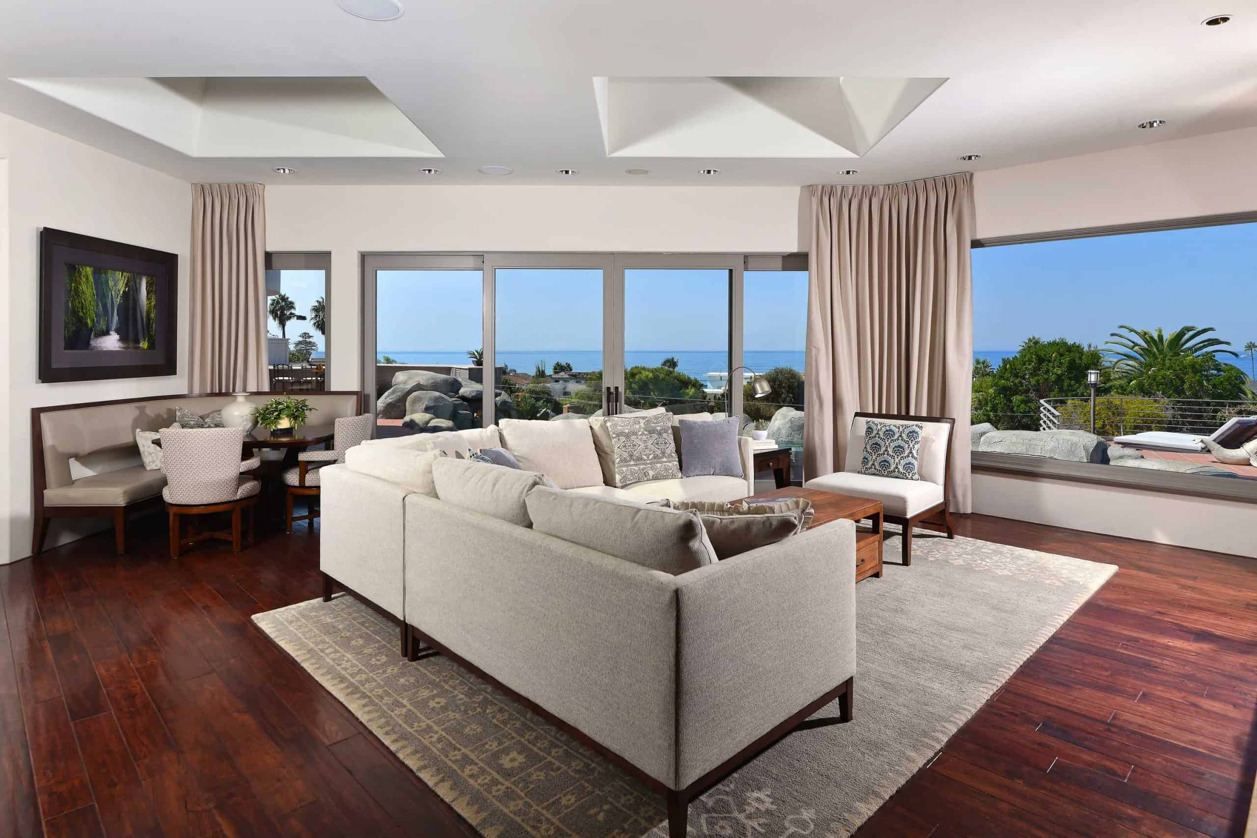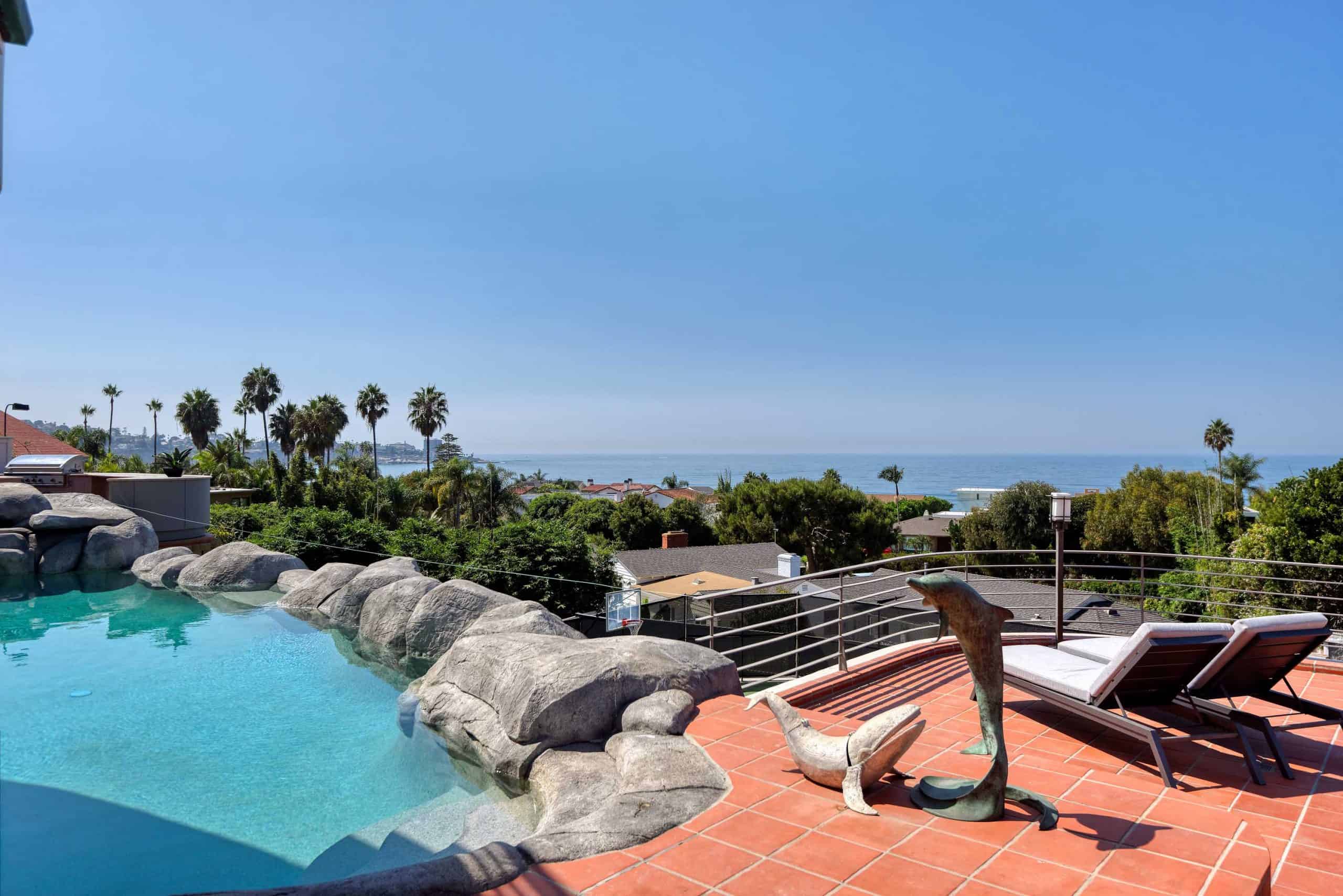 On vast grounds of appx 2/3 acre with tennis/basketball court and guest house by the beach, this architectural signature estate enjoys magnificent panoramic views to La Jolla Cove, whitewater surf and open sea. Curvilinear one-level living areas maximize this prime site close to the beach and brings the bright outdoors in via massive planes of glass and skylights. Fantastic for entertaining with natural rock-surround pool, expansive patio area with outdoor kitchen. A special property to make your own.