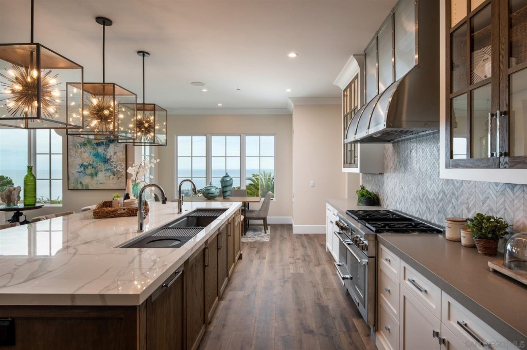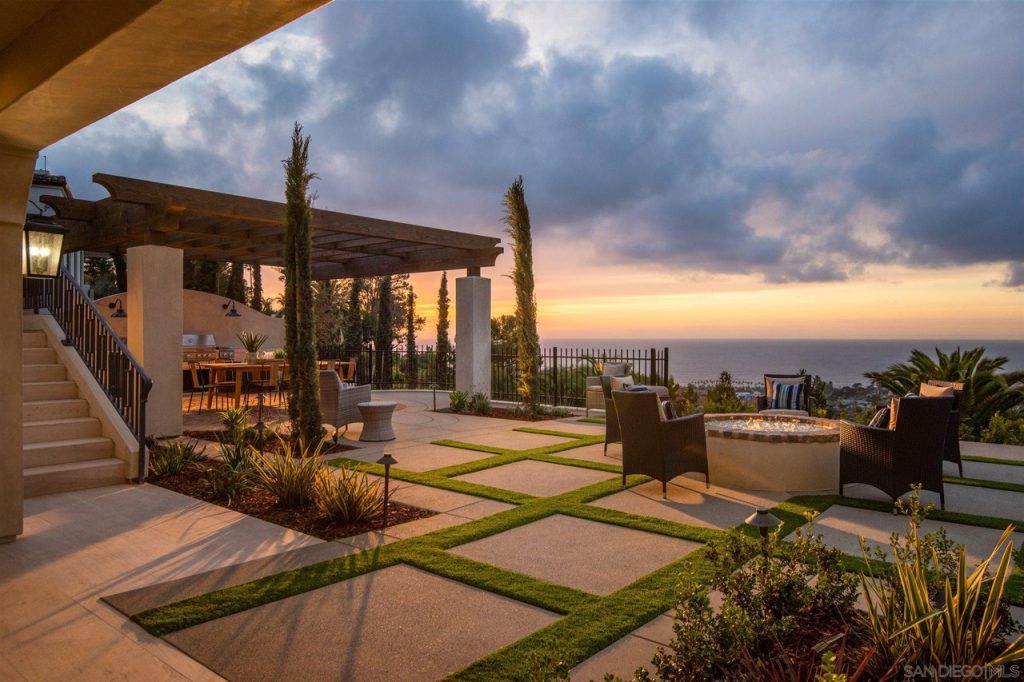 Brand new construction on Muirlands Drive completed in 2021 features timeless architecture on over half an acre with panoramic ocean, village, and golf course views from nearly every point of the property. Three stunning levels center on a striking entry floor where a great room with kitchen, living, and dining opens to a view terrace warmed by an outdoor fireplace. Property has seven en-suite bedrooms including a dedicated guest suite, executive office, wellness center with dry and steam saunas, saltwater pool and spa, media room with bar and wine storage, elevator, Control4 tech, three-car garage, and gated motor court for exceptional off-street parking.
