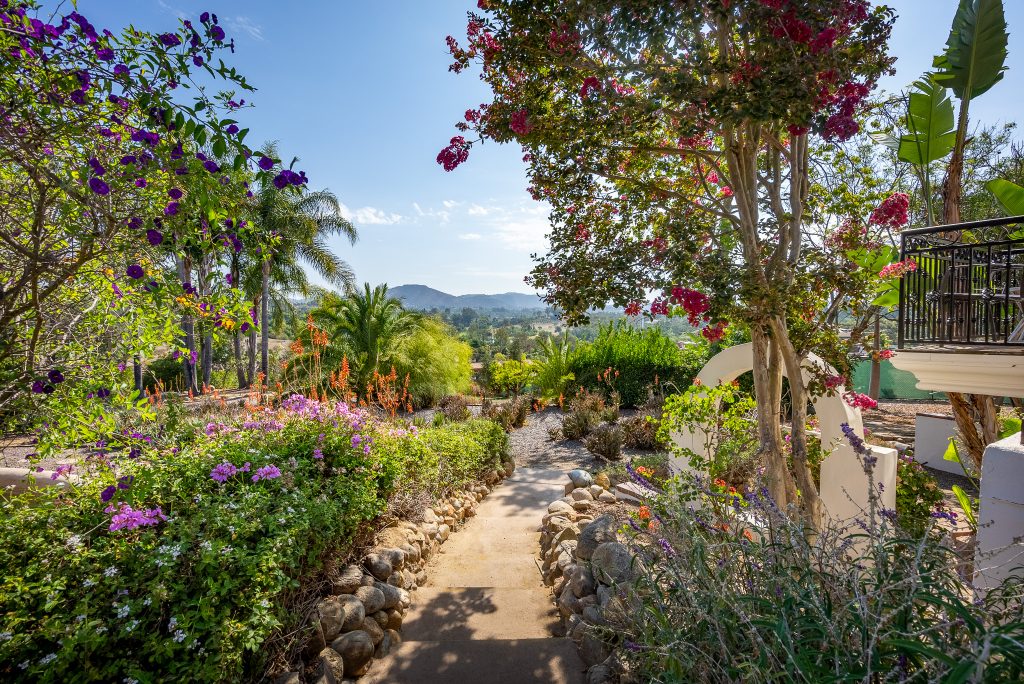 Extraordinary elegance with Mediterranean influences perched high on a hilltop in Rancho Santa Fe’s signature Covenant. Situated on 2.95 lushly landscaped acres, with dynamite panoramic views of the mountains, valleys and countryside. Graced with high quality and craftsmanship throughout, this 4-plus bedroom (4th bedroom can be accessed from the outside), 4.5-bath main home embodies the essence of Southern California living at its finest. The casual yet sophisticated living and beautiful dining rooms open out to large entertaining courtyards and terraces. The home also boasts a library/office, a large family room off the cook’s kitchen, sun drenched breakfast room, game room/artist studio and gym. Surrounded by lush mature landscape, the zero edge pool with bubbling fountains, spa and slide, fruit orchard and gated entry offer a truly private setting.