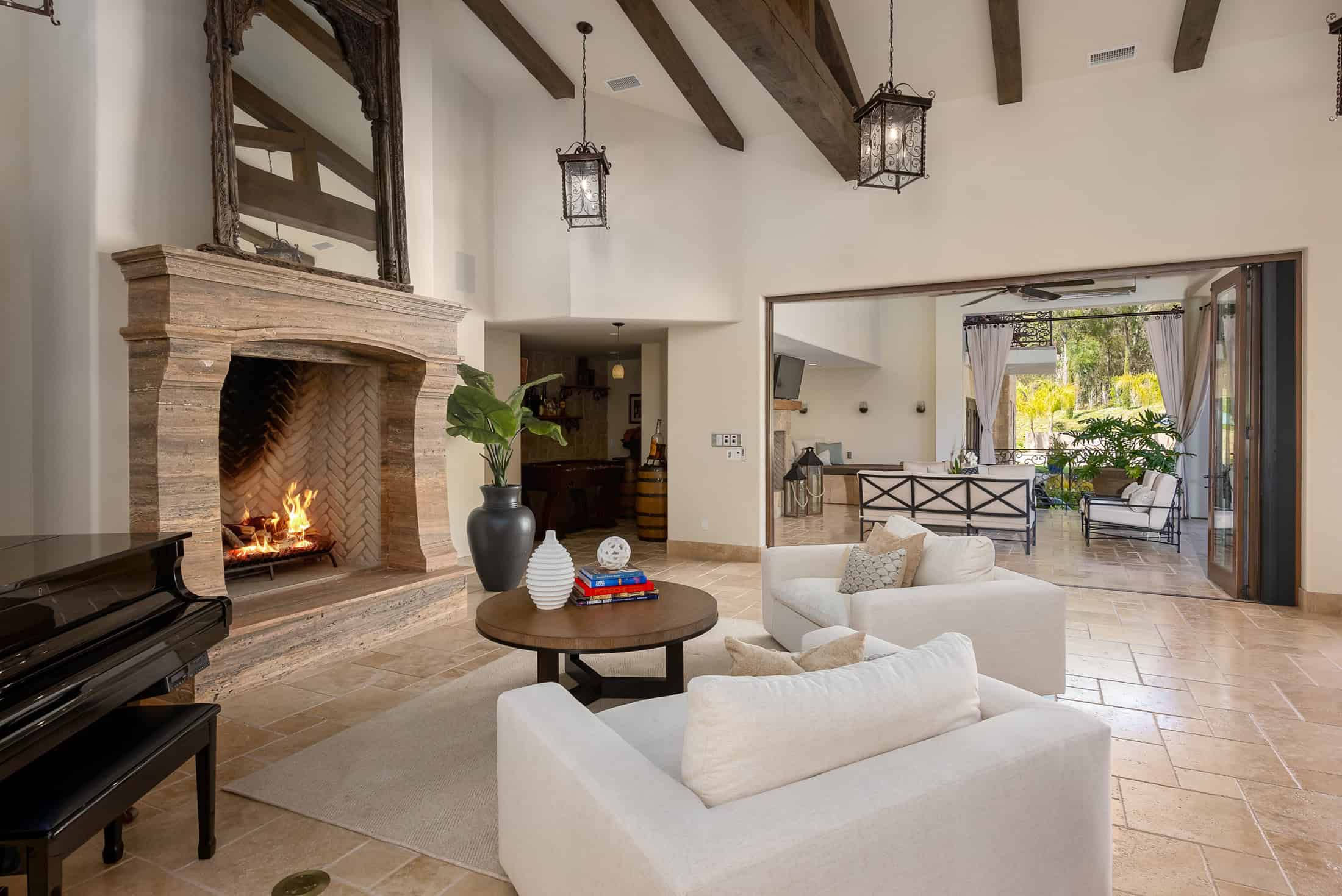 Lives as a single level and has all the amenities of your own private resort. The Mediterranean architecture is meticulously designed implementing the finest materials, quality and craftsmanship. Timeless design with solid wood beams, soaring ceilings, gorgeous entry and a great room that opens to an outdoor loggia with a cozy fireplace and outdoor heaters for year-round entertaining.