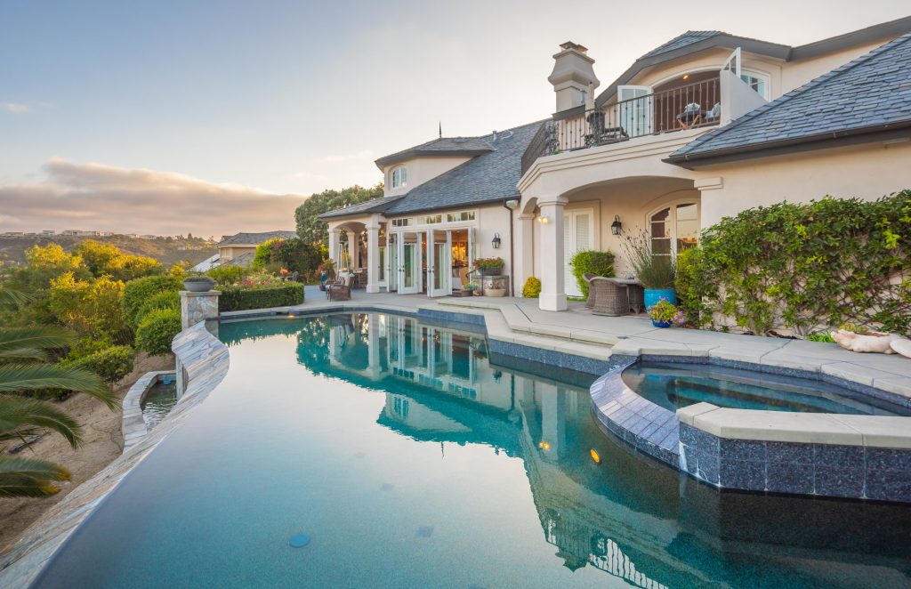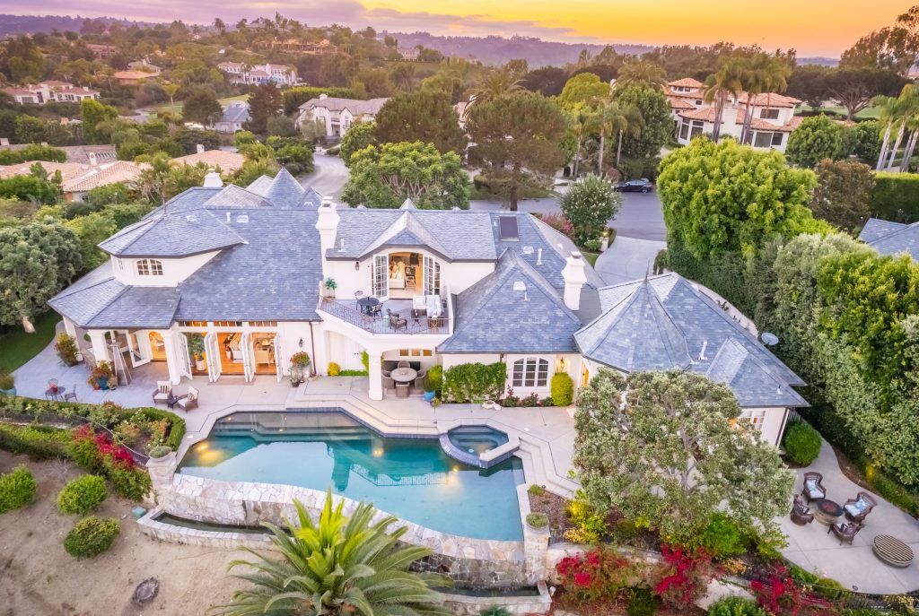 Discover your new lifestyle in Del Mar Country Club at this hilltop cul-de-sac location with unforgettable golf course & ocean views. This custom French Country Estate with exquisite European features lives like a single level with its primary suite & three ensuite guest bedrooms on the entry level. Cooking will be a joy in the gourmet kitchen with oversized island, top of the line appliances, generous walk-in pantry & lovely breakfast room that spills into the Great Room. Enjoy the California lifestyle year round with the jaw dropping vanishing edge salt water pool & spa, fire-pit, wrap around verandas, fruit trees & dog run. The luxury continues with upstairs bedrooms, game room with a wet bar & outdoor terrace See Supplement SWEEPING VIEWS, large leaded glass windows, wood flooring, slate roof, copper gutters, a well-appointed home office & 3 car garage. Located just minutes to dining, shopping, beaches & award winning schools. Come envision your new beginning while it is still available!