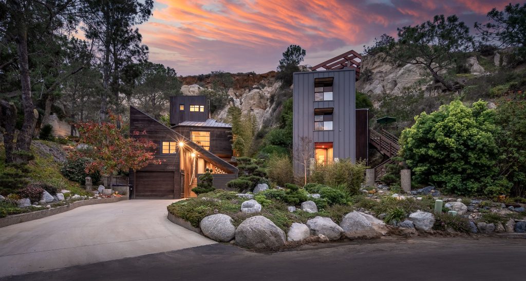 Immersed in nature among the sandstone bluffs and the Torrey pines, this private oceanview, artful home was designed by renowned architect Rob Wellington Quigley. The contemporary coastal space offers serenity and luxury finishes throughout including gorgeous solid Brazilian hardwood floors, bronze railings, a new kitchen and appliances, and air-conditioning. The custom windows frame the picturesque views of the sparkling blue ocean and the sandstone bluffs.