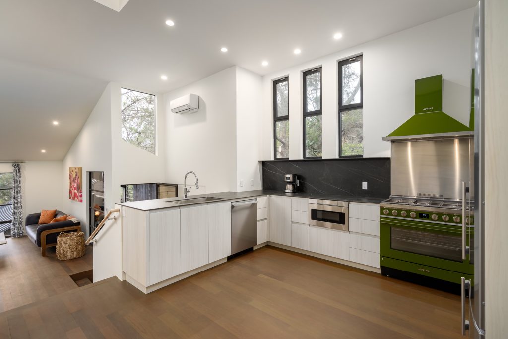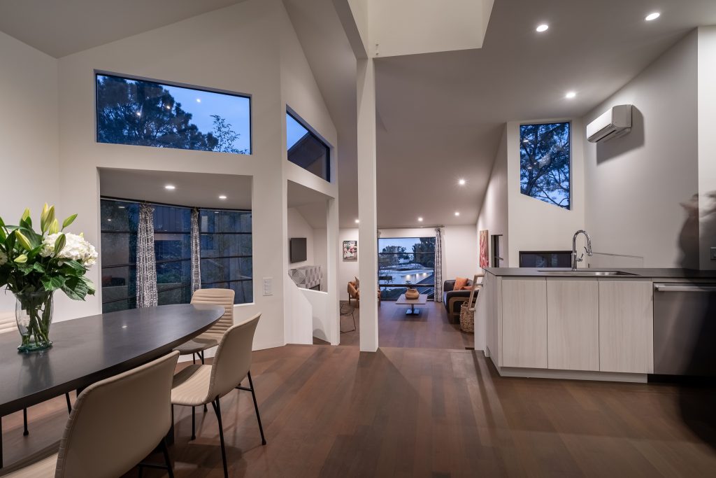 The property consists of two structures. The main structure (north structure) welcomes you as you enter the front gate with a gentle waterfall and garden. Climb the steps and enter the sliding wooden door to an area with two bedrooms and two ensuite bathrooms. Both of these bedrooms offer a multitude of uses – either for guest rooms, office space, art space or even for multi-generational use. Click here for more details