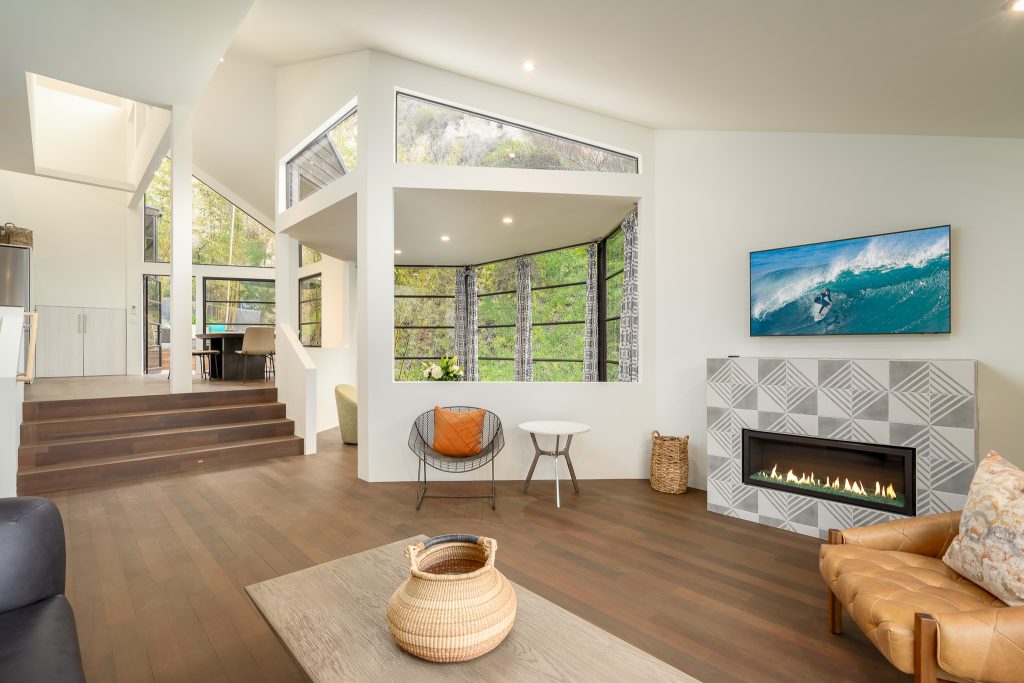 Immersed in nature among the sandstone bluffs and the Torrey pines, this private oceanview, artful home was designed by renowned architect Rob Wellington Quigley. The contemporary coastal space offers serenity and luxury finishes throughout including gorgeous solid Brazilian hardwood floors, bronze railings, a new kitchen and appliances, and air-conditioning. The custom windows frame the picturesque views of the sparkling blue ocean and the sandstone bluffs.