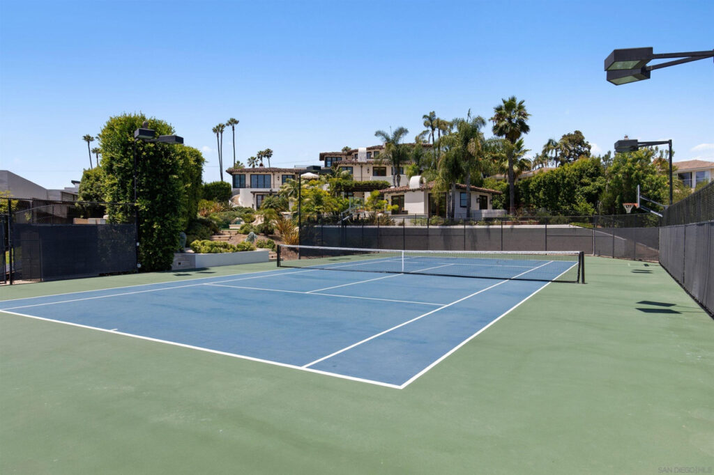Set on nearly one acre of land and with captivating panoramic views of the ocean, bay, and city skyline, this Mediterranean-chic estate radiates elegance. The fully-gated property offers exquisite architecture while expansive view terraces capture the horizon from sunrise to sunset. A recent top-to-bottom refresh includes a remodeled kitchen, new French doors, new carpeting, refinished wood floors, resurfaced tennis court, and more. The sprawling estate also features a guest house, wine room, six-car garage, home theater, luxurious paneled library/office, and stunning resort-style pool with swim-up bar and water slide. As an added bonus, this exceptional residence is powered almost entirely by solar.