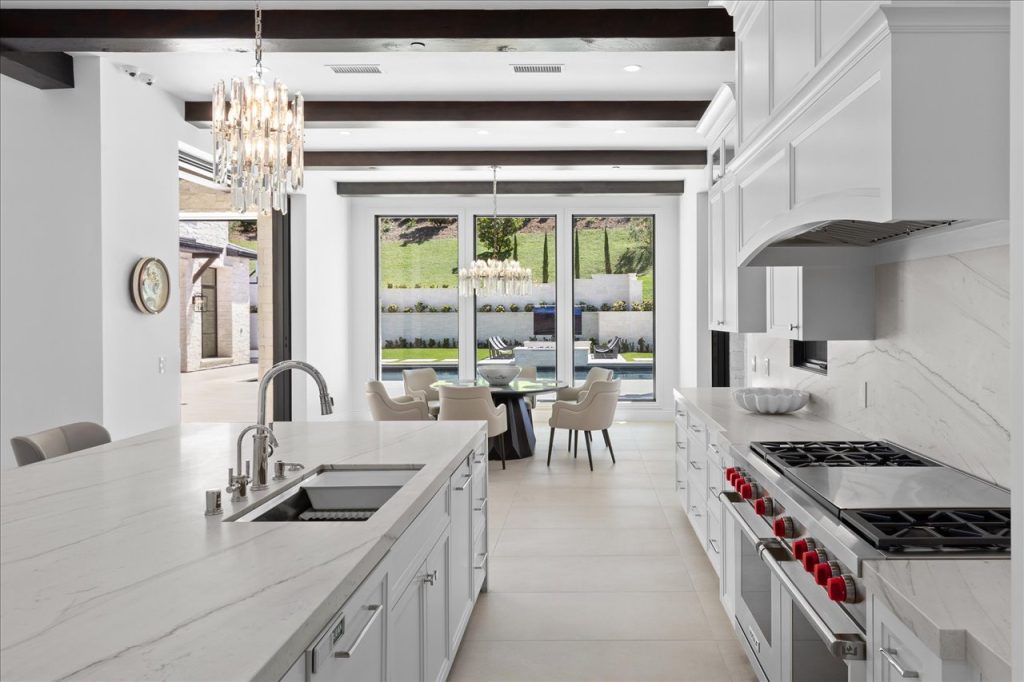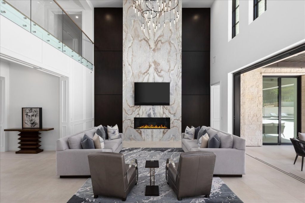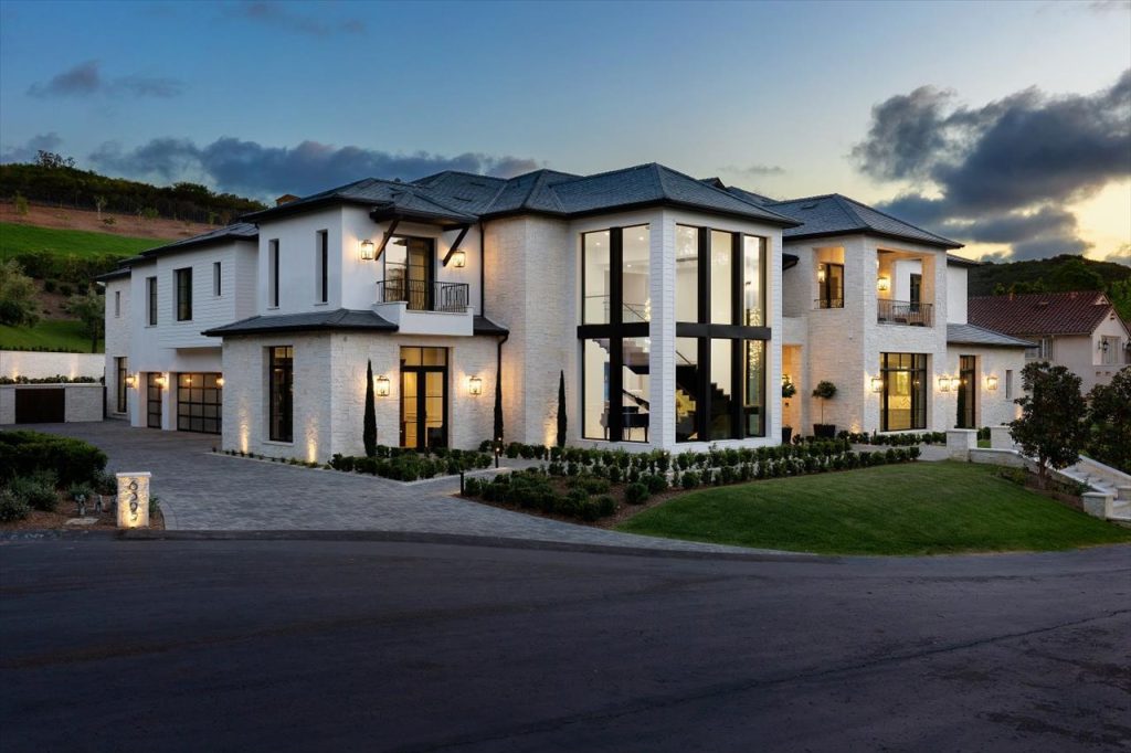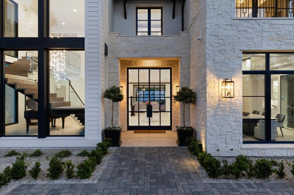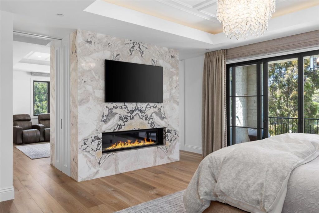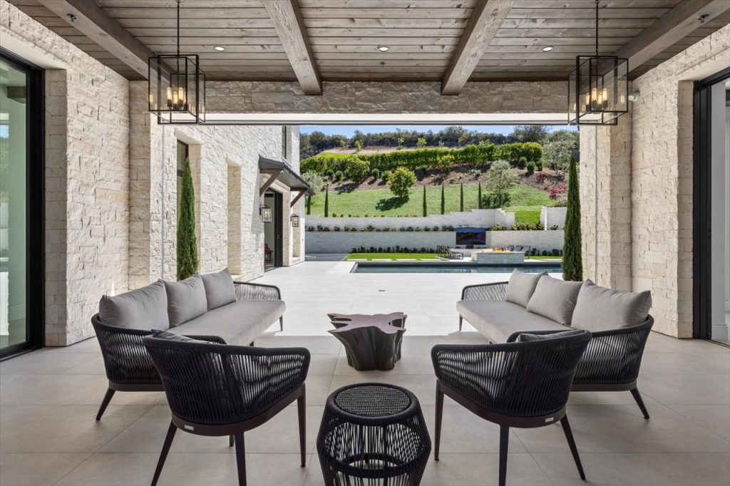 Impeccable design & scale take center stage in this 2022-built modern estate. Bespoke designer finishes throughout include a floating foyer staircase with adjacent custom walnut elevator, large format Italian & European white oak floors, floor-to-ceiling glass wine storage, exotic backlit onyx bar, basalt stone waterline pool/spa that gives a glass-top effect, 5-star resort-style gym & wellness center, and sliding doors creating a seamless confluence from inside-out. With second floor sound proofing, the ultimate primary suite offers total privacy and unobstructed views, complete with a spa destination bath, two custom boutique closets, and an open relaxation area. The incomparable quality throughout extends to the slate roof with owned solar, 5-car garage, outdoor entertaining with retractable TV and poolside firepit, and aesthetic sport court. Situated on over 1 acre in a premier gated community, the property overlooks one of Rancho Santa Fe’s finest golf courses.