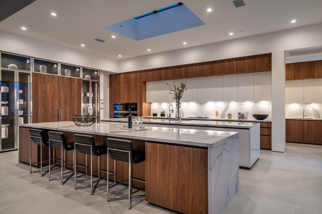 Luxury exudes from every corner of this 6 bedroom, NEW construction. A pivot entry door provides never-ending VIEWS beyond the zero-edge pool, while the great room features 14′ ceilings and custom fireplace. Exquisite details abound in the Master Suite, from an automated pocket door, LED-lit ceiling, and retreat-like spa bath with Fantini fixtures and stone-slab walls. The custom couture closet is no exception, with Italian cabinetry and glass LED displays. The home boasts Unique Design Elements, including an Office with floor-to-ceiling glass design and powder bath with custom black slab sink. With a 1,000 Sq.Ft. Detached Guest House, in-home Gym, the best in SMART-home technology, and prime location, this home has it all. Offered at $12,995,000