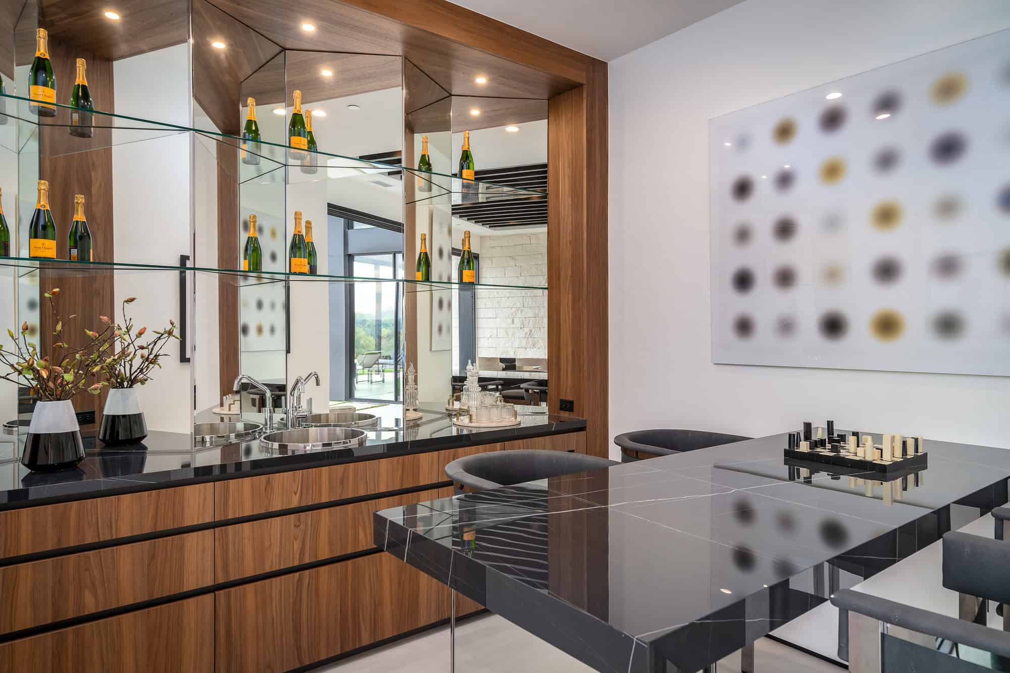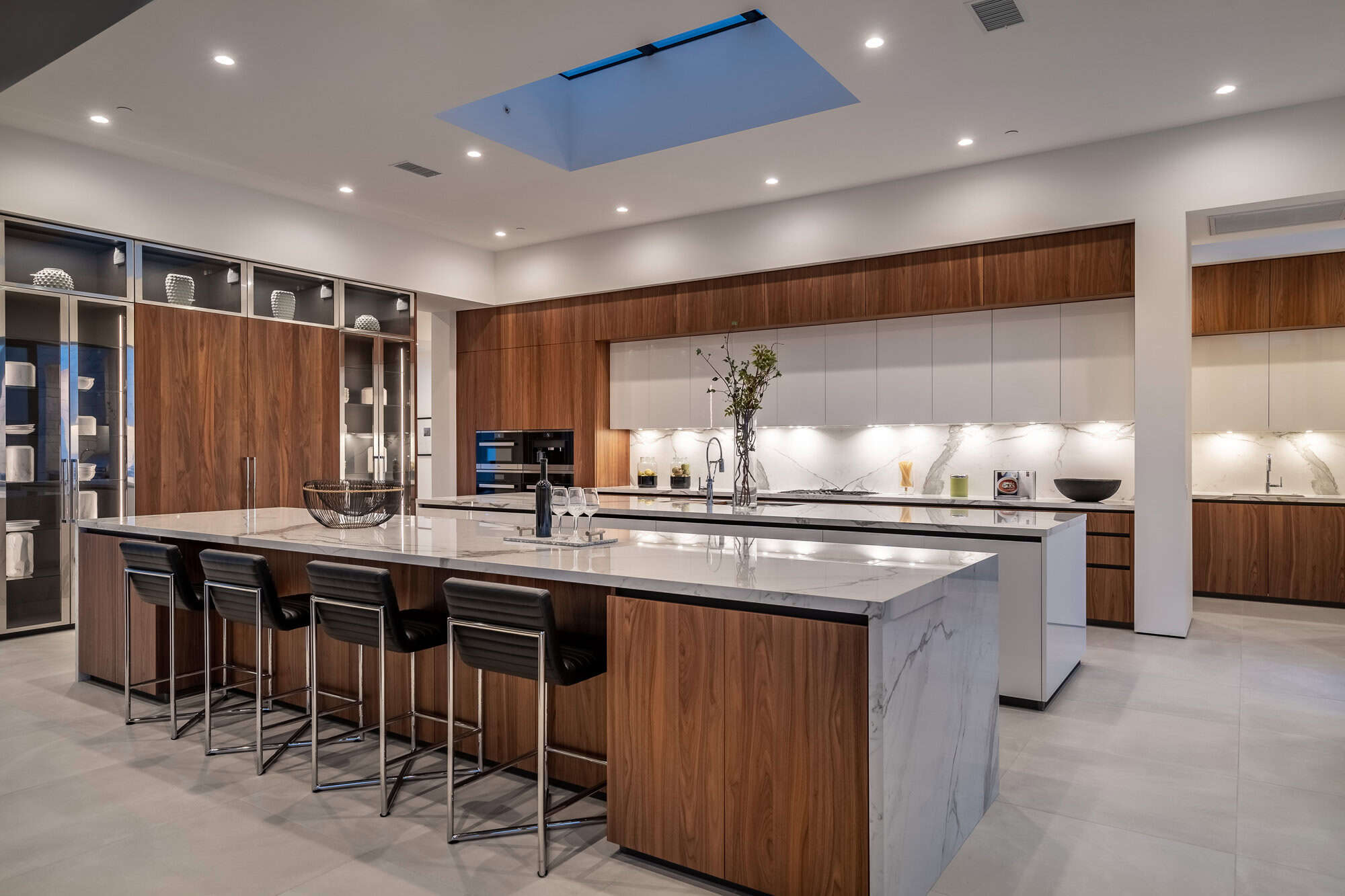 Luxury exudes from every corner of this 6 bedroom, NEW construction. A pivot entry door provides never-ending VIEWS beyond the zero-edge pool, while the great room features 14′ ceilings and custom fireplace. Exquisite details abound in the Master Suite, from an automated pocket door, LED-lit ceiling, and retreat-like spa bath with Fantini fixtures and stone-slab walls. The custom couture closet is no exception, with Italian cabinetry and glass LED displays. The home boasts Unique Design Elements, including an Office with floor-to-ceiling glass design and powder bath with custom black slab sink. With a 1,000 Sq.Ft. Detached Guest House, in-home Gym, the best in SMART-home technology, and prime location, this home has it all. Offered at $12,995,000