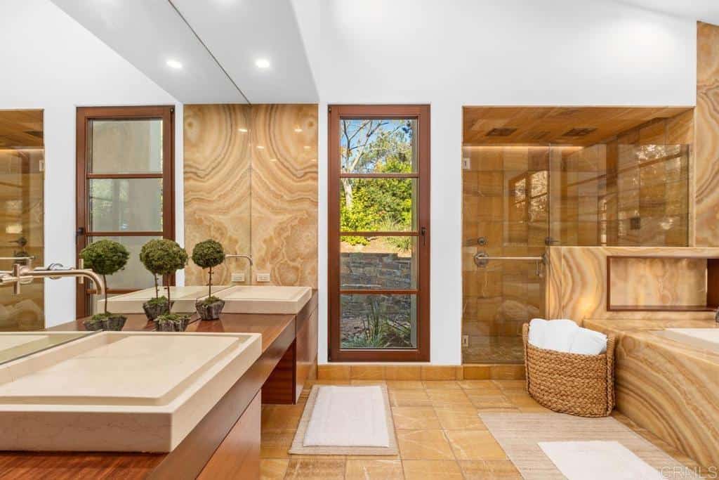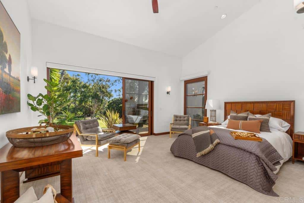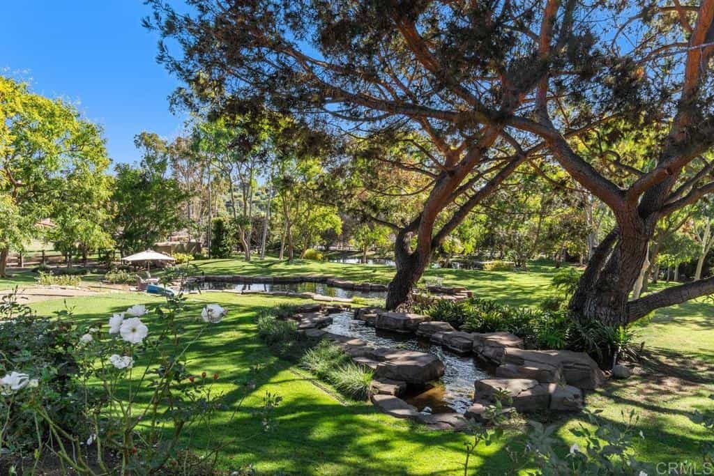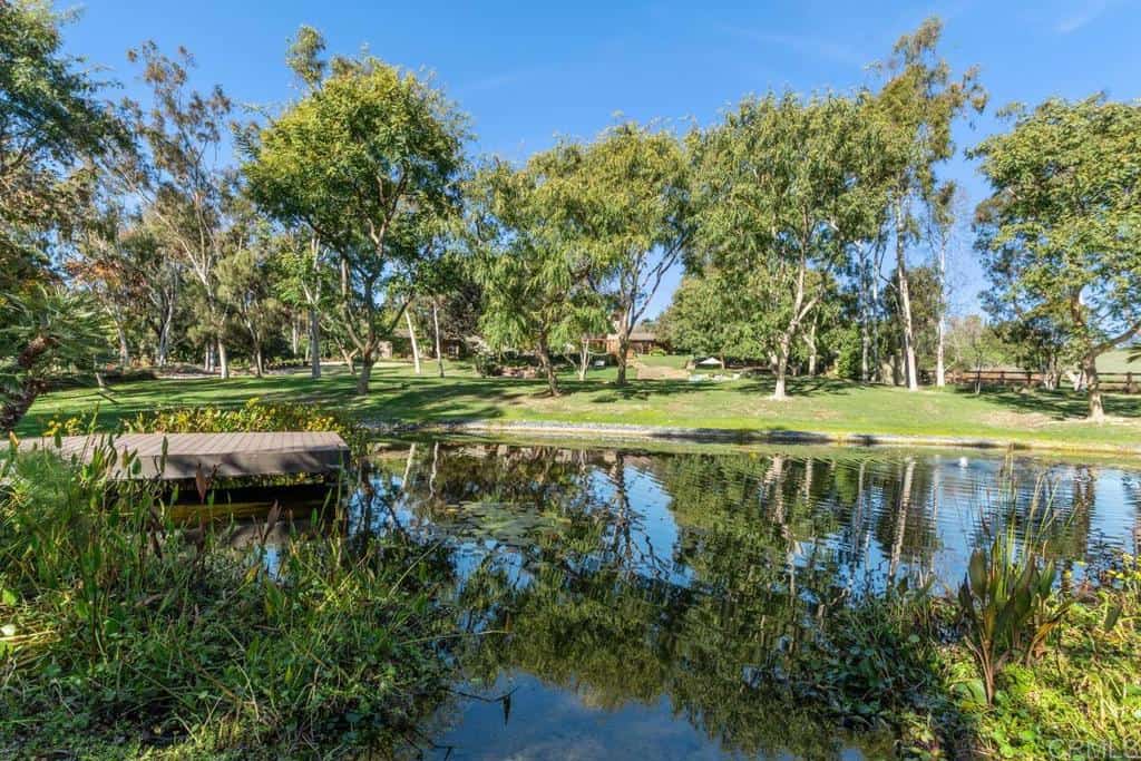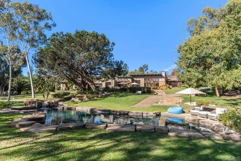 A tranquil modern retreat awaits you in this private gated property in The Covenant of Rancho Santa Fe! Situated on 3.6 acres, this single-story oasis features a resort style pool/spa, private pond, and relaxing park-like views from nearly every room in the home. Spacious great room with soaring ceilings, two fireplaces, wood flooring, and large sliding doors for indoor/outdoor living. Chef’s kitchen was made for entertaining, with stainless steel Dacor appliances, dual ovens, dual dishwashers, separate preparation island with sink and two faucets, and built-in refrigerator. Take in peaceful backyard views from the breakfast area which includes a fireplace and large sliding doors. Primary retreat is located in a separate wing of the home, and features a cozy fireplace, large sliding doors to private patio, separate workout space or additional living area, and spa-like bath with large soaking tub, separate enclosed shower, and walk-in closet. Family room, additional office space with built-ins, and secondary bedrooms are situated on the opposite side of the home, each with their own en-suite bath. California living at its finest with a large resort style pool & spa, grass space, lush trees, and pond with dock. Enjoy dining al fresco on the multi-level backyard patio with outdoor kitchen. A three car garage and oversized private driveway offers ample parking. Situated in a top rated school district, with stunning golf courses, beautiful hiking trails, highly rated dining, and shopping nearby!