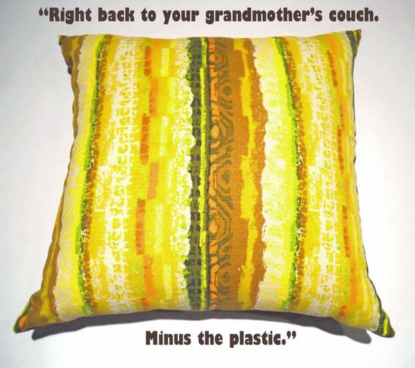 - 1950’s Mustard Striped Bark Cloth Pillow by Deborah Main $195 deborahmaindesigns.com