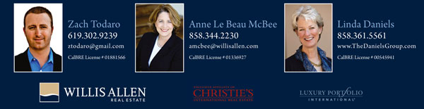 Anne Le Beau McBee, Willis Allen Real Estate 858.344.2230 amcbee@willisallen.com  CalBRE License # 01336927