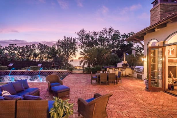 Screaming summer 365 days per year is something this very special home conveys the moment you pull into the hand laid, vintage brick driveway. Four years in planning and building the 5,000+SF home, custom built in 2012, is nothing short of miraculous. The village location is steps to dining, shopping, the beach and offers a large and very private ocean view lot, which will be near to impossible to duplicate again. To take advantage of the location, porches, ocean view terraces were thoughtfully planned for ease of access to village and beach. Rewriting the rules of Old Del Mar, the space throughout the home is incredibly generous and walls of French doors add to the ideal and seamless indoor/outdoor living. The 5 en-suite bedroom home doesn’t miss anything on design, finish quality and amenities. The ocean view back yard is an entertainers dream with full outdoor kitchen complete with pizza oven, oversized pool & spa, fire pit, raised bed gardens, dog run, grass area and plenty of space. For indoor fun you will enjoy the professional media room, extra bonus room in addition to the large and gracious gourmet kitchen that opens to both the family room and living room. The home has hidden security cameras, detached guest home, full music throughout and set up for an elevator. This property is truly the American Dream and its beauty and quality make it timeless. Seller will entertain offers between $7,995,000 – $10,994,876