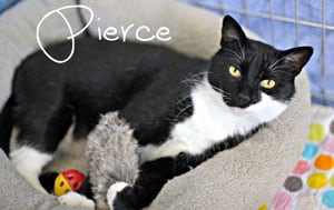 Pierce was found wandering with some homeless cats and struggling to make ends meet on his own. “A sweetheart of a cat” sums Pierce up exactly. He is loving, easygoing, affectionate, good-natured, and such a very nice boy to be around. Pierce is fine with other cats once properly introduced and should be okay with gentle children. He hasn’t told us how he feels about dogs, though his gentle nature suggests that an equally gentle dog would likely be a comfortable housemate.