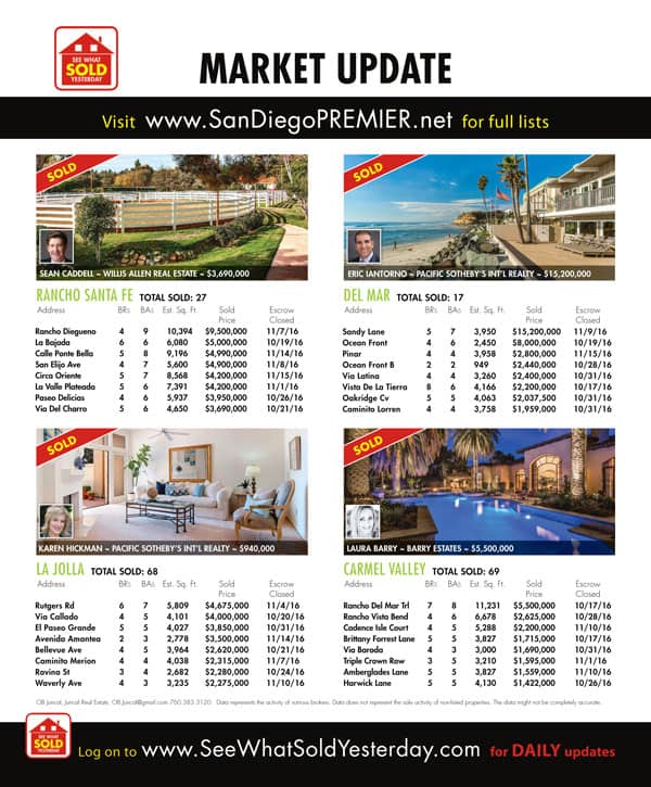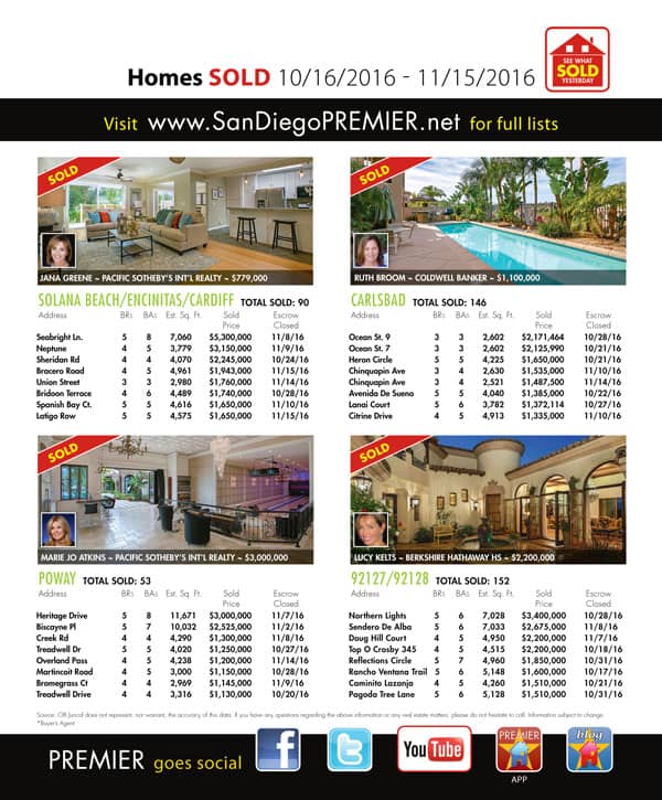 For San Diego MLS listed properties SOLD between October 16, 2016 and November 15, 2016 click the link here. Download PDF– Click Here