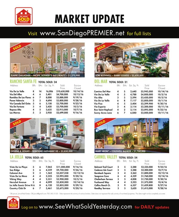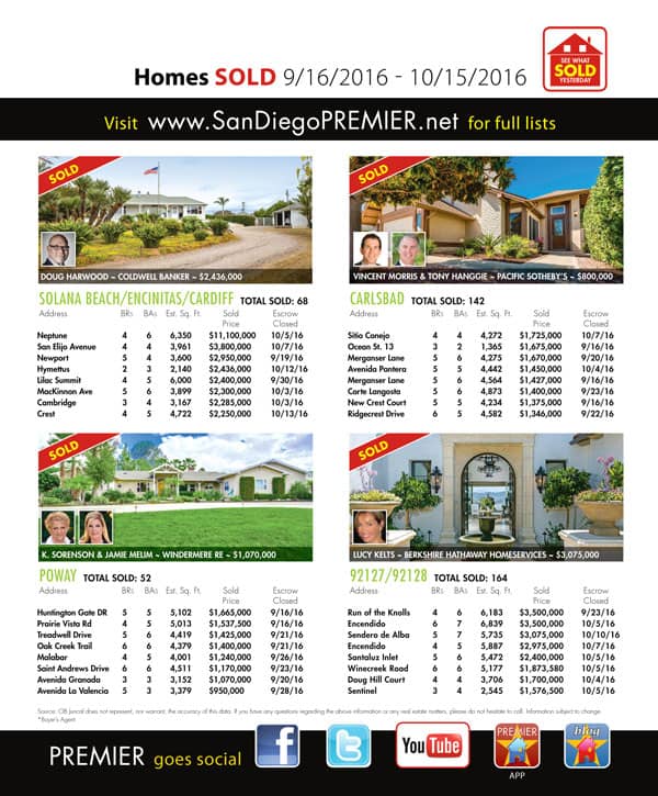For San Diego MLS listed properties SOLD between September 16, 2016 and October 15, 2016 click the link here. Download PDF– Click Here