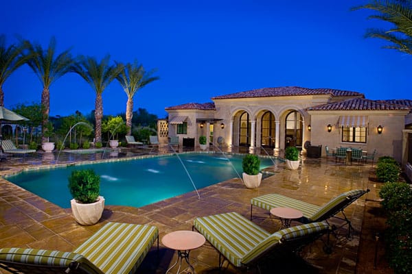 An outdoor oasis envelops the home, extending resort-style comfort and luxury; not to mention lush landscaping, barbeque kitchen and poolside lounging. A guest house, maid’s quarters, exercise room, tennis and basketball courts, and children’s or guest wing complete the estate.