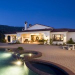 A Jon DeLay-designed Classic Spanish inspired pool with raised Jacuzzi and children’s pool offers fun in the sun for the entire family. Bull nose and clay brick coping surrounding the pool continues the theme of brick from indoors to out. Paver decking looks beautiful and adds to the carefully executed fire safety precautions taken, obviously so important to the Lyles’. The landscaping offers a 100 ft perimeter of defensible space within which are planted only fire safe plants.
