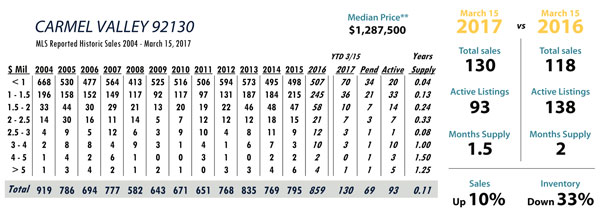Based on MLS data from these zip codes, 92067,92091,92014,92037,92130,92118,92024,92127,92128, 92008,92009,92010,92011,9075,92064,92101 for the period of 1/1/2004 – 3/15/2017.