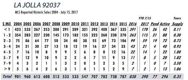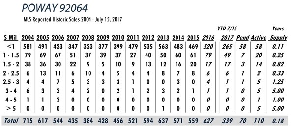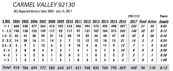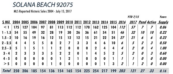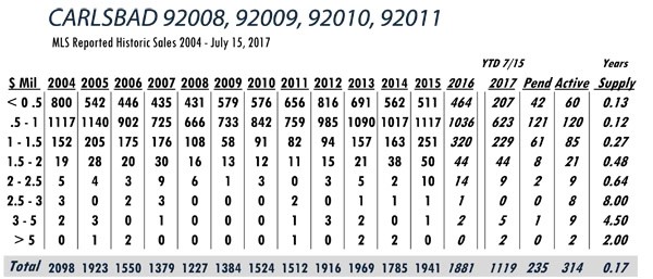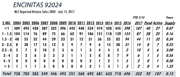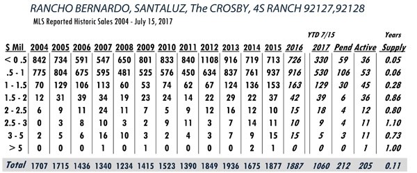 Based on MLS data from these zip codes, 92067,92091,92014,92037,92130,92118,92024,92127,92128, 92008,92009,92010,92011,9075,92064,92101 for the period of 1/1/2004 – 7/15/2017.
