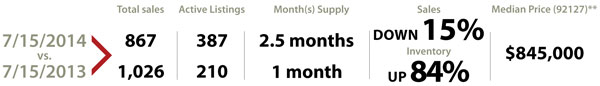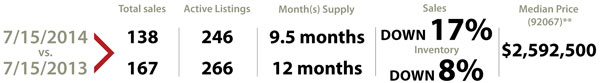 *Based on MLS data from these zip codes, 92067,92091,92014,92037,92130,92118, 92024,92127,92128 for the period of 12/31/2013 – 7/15/2014.