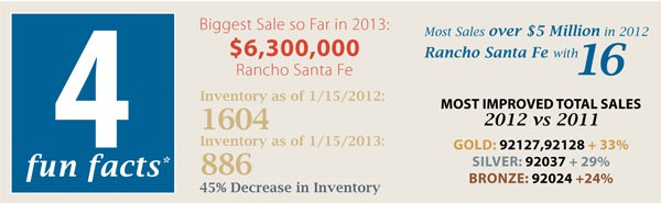*Based on MLS data from these zip codes, 92067,92091,92014,92037,92130,92118, 92024,92127,92128 for the period of 1/1/2012-12/31/2012 and 1/1/2013 – 1/15/2013