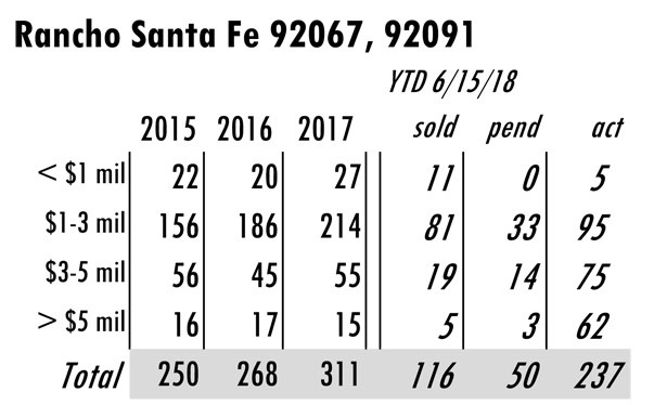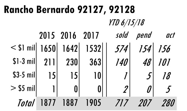 Based on MLS data from these zip codes, 92067,92091,92014,92037,92130,92118,92024,92127,92128, 92008,92009,92010,92011,9075,92064,92101 for the period of 1/1/2004 – 6/15/2018.